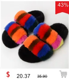 Summer Sliders Shoes Woman Fox Fur Slippers Outdoor Women Luxury Ladies Furry Slippers Flat Footwear New Arrival 2020 Free Dropshipping