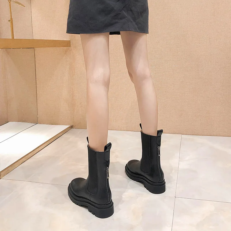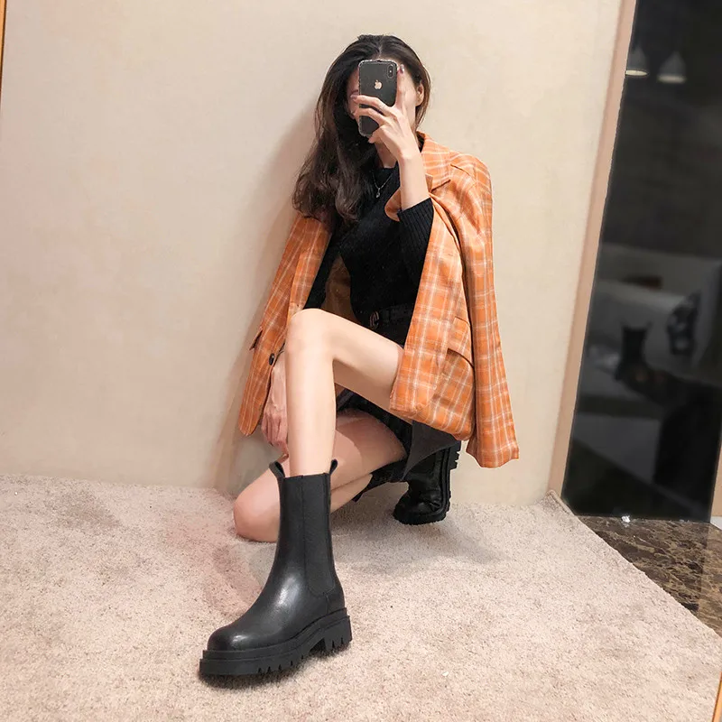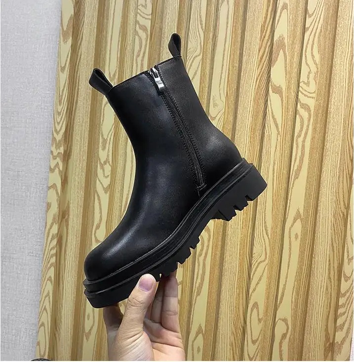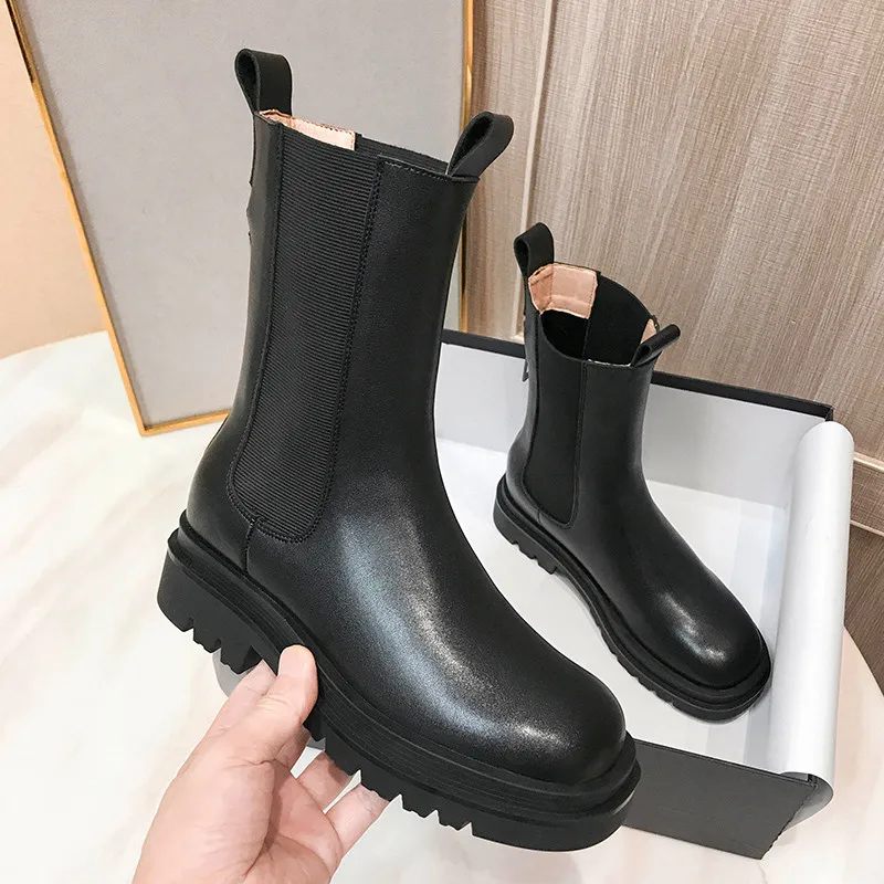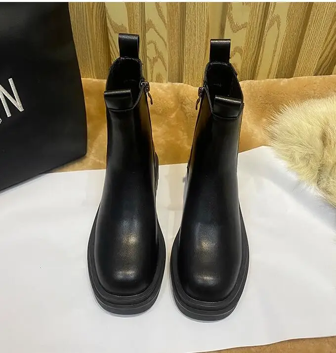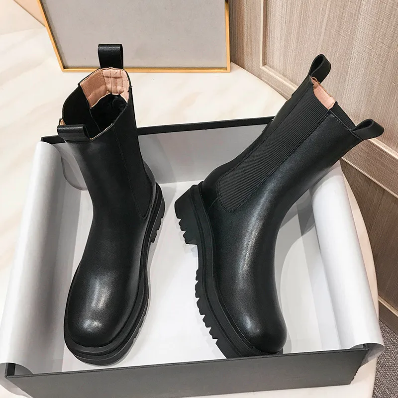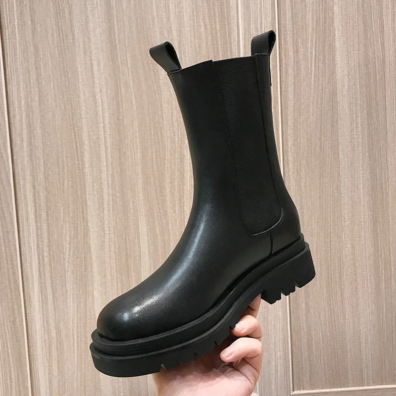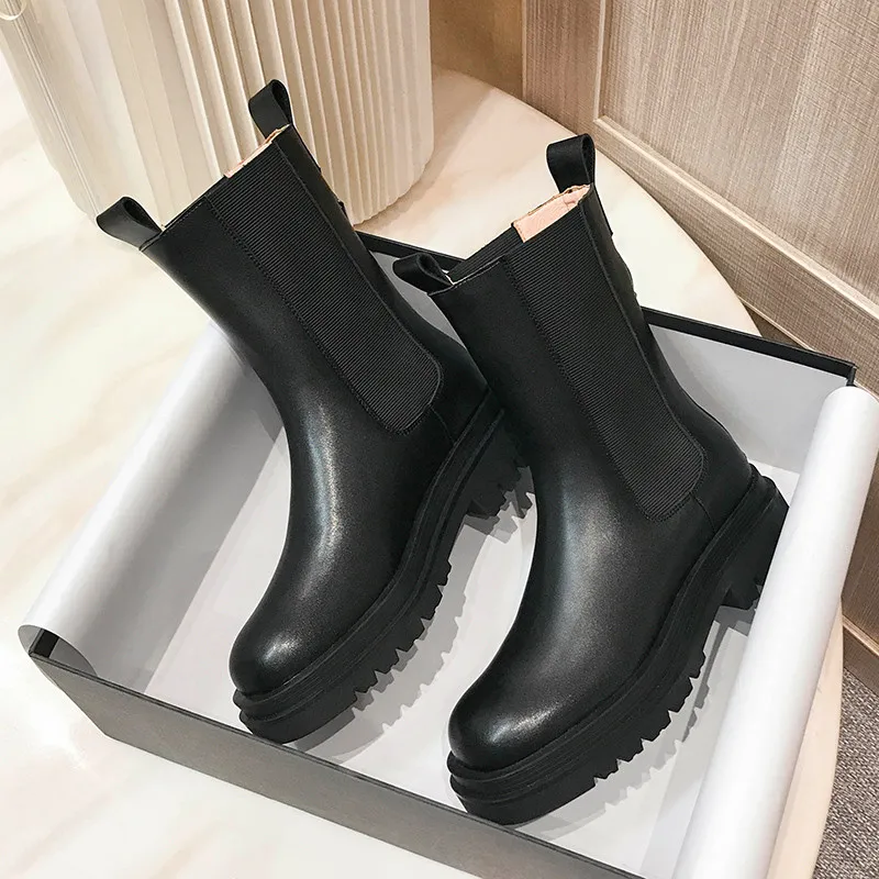 Genuel Leather 41 42 43 Luxury Chelsea Boots Women Platform Lady Boots Chunky Winter Shoes Short Ankle Boots Thick Heel Designer