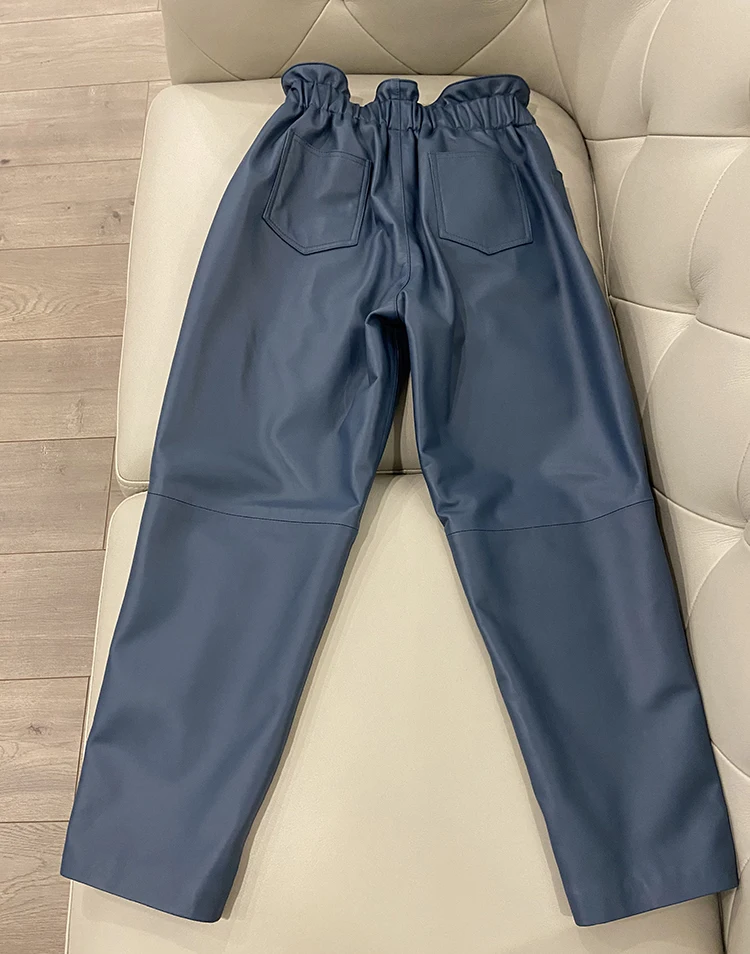 Genuine leather pants women winter 2020 new fashion elastic high waist pants women plus size harem pants casual trouser female