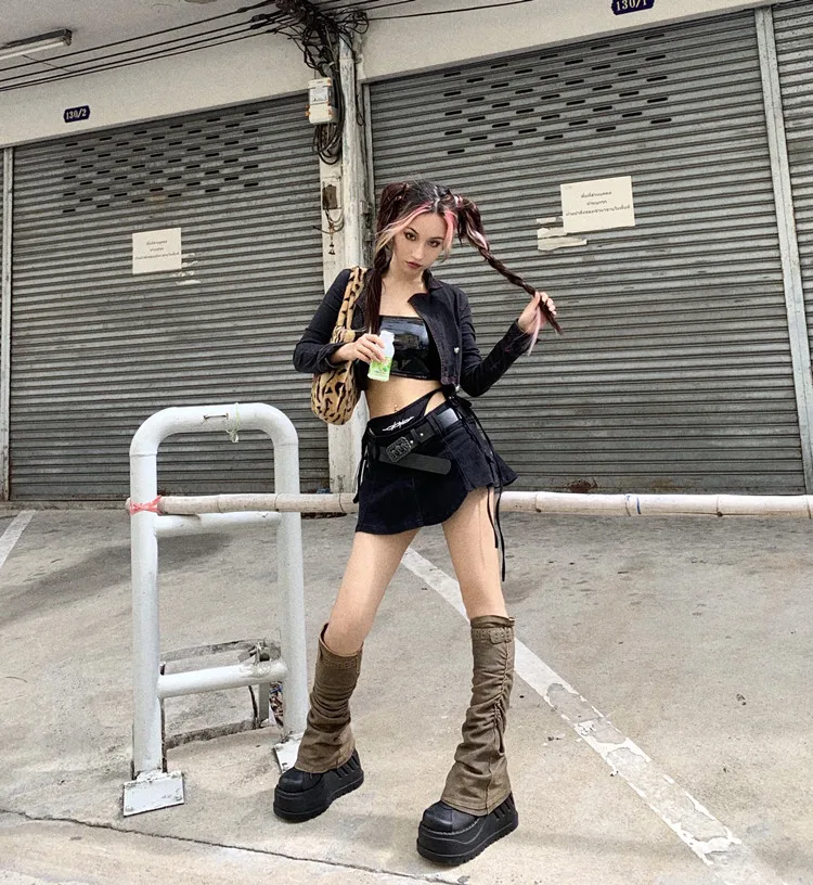 Girls Original Harajuku Low Waist Mini Pant Skirt Solid Black Punk Skull Waistband Denim Culotte Plus size