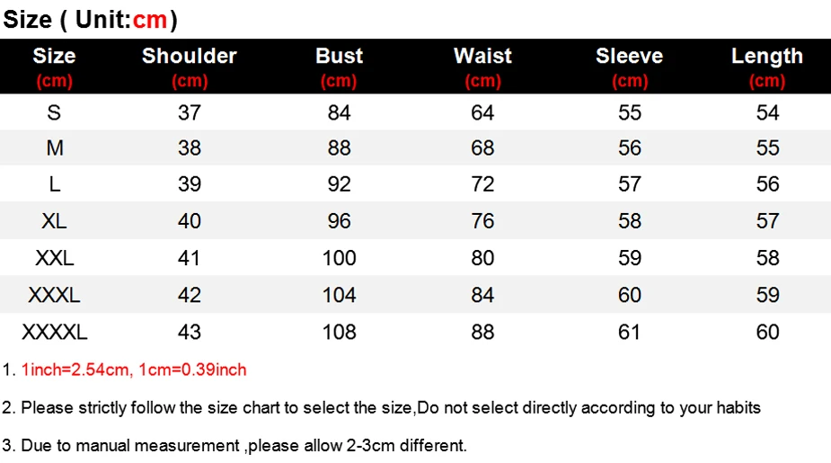 SizeChest WidthLengthWaist WidthSleeve Length