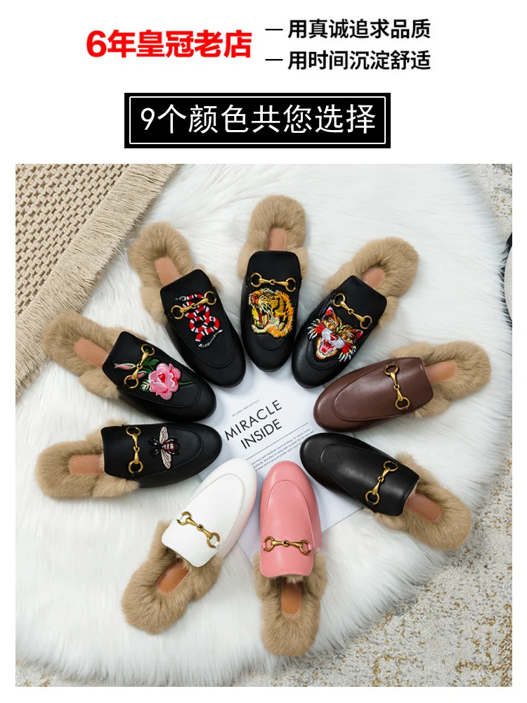 Hairy Slippers Women Wear Autumn/winter Mueller Shoes 2020 New Net Red Lazy Shoes Flat Rabbit Hair Bag Head Half Slippers