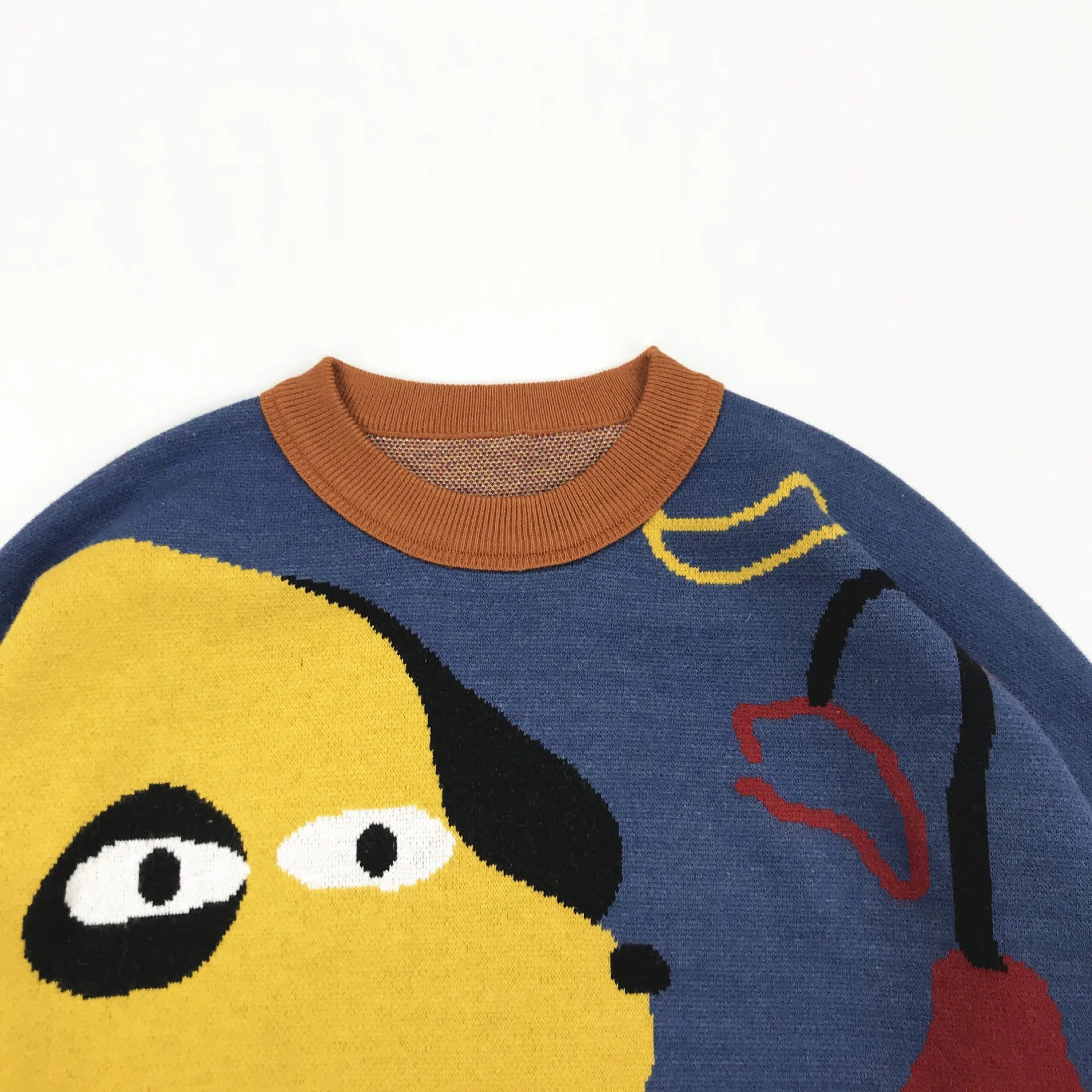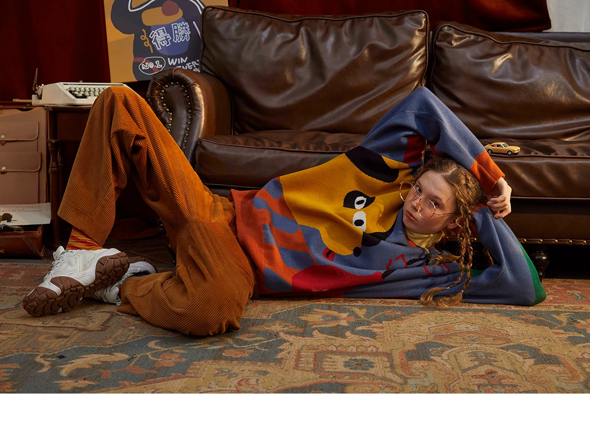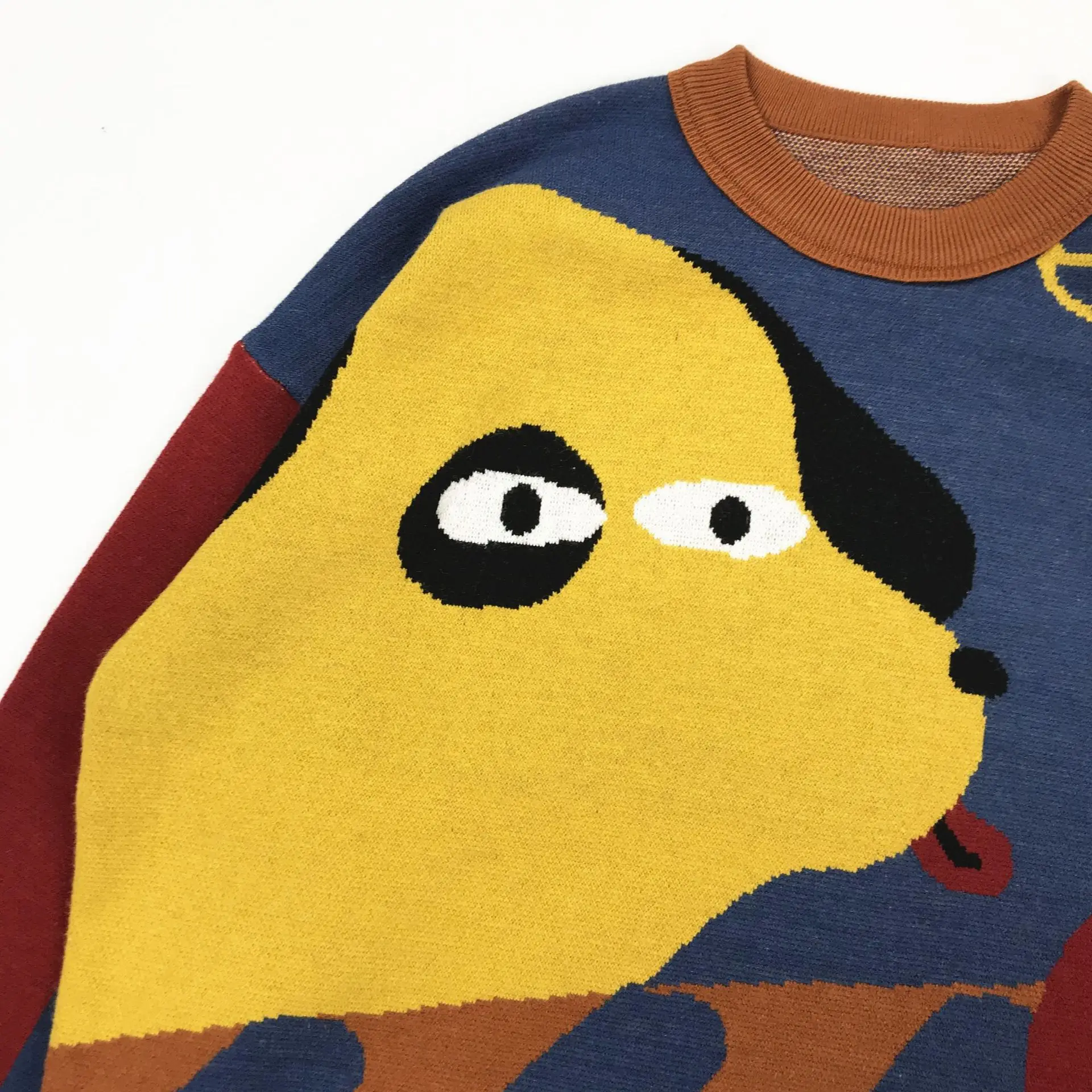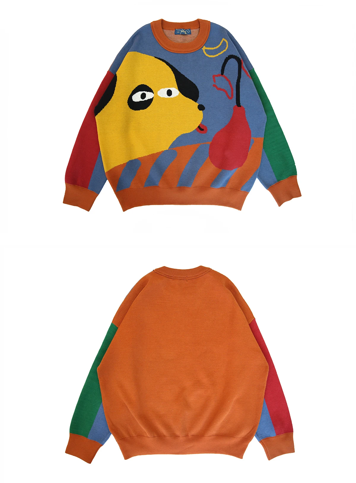 Harajuku BF loose soft Winter Design Women Pullover Sweaters Long Sleeve Cartoon Dogs Color Block High-quality Knitwear tops