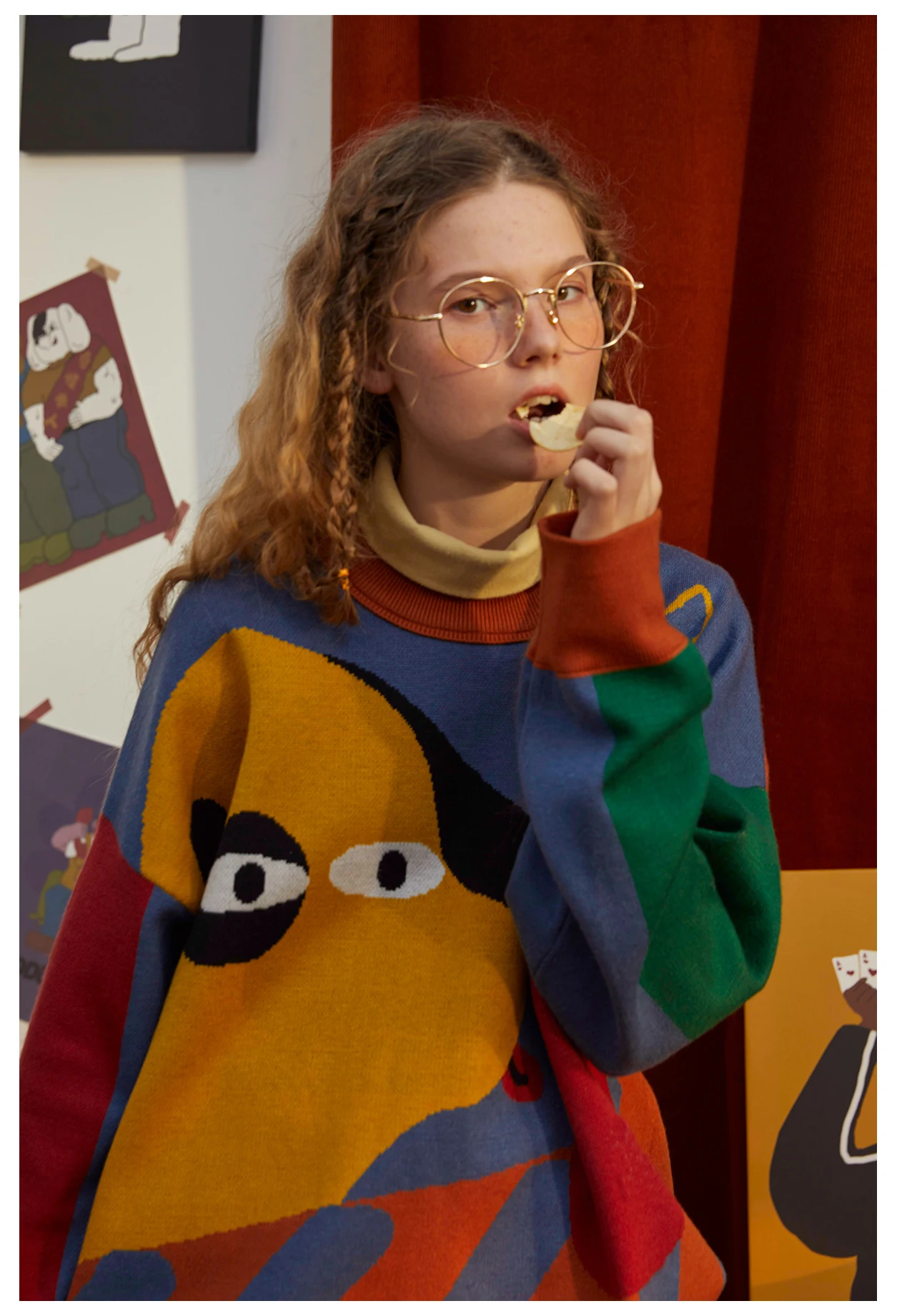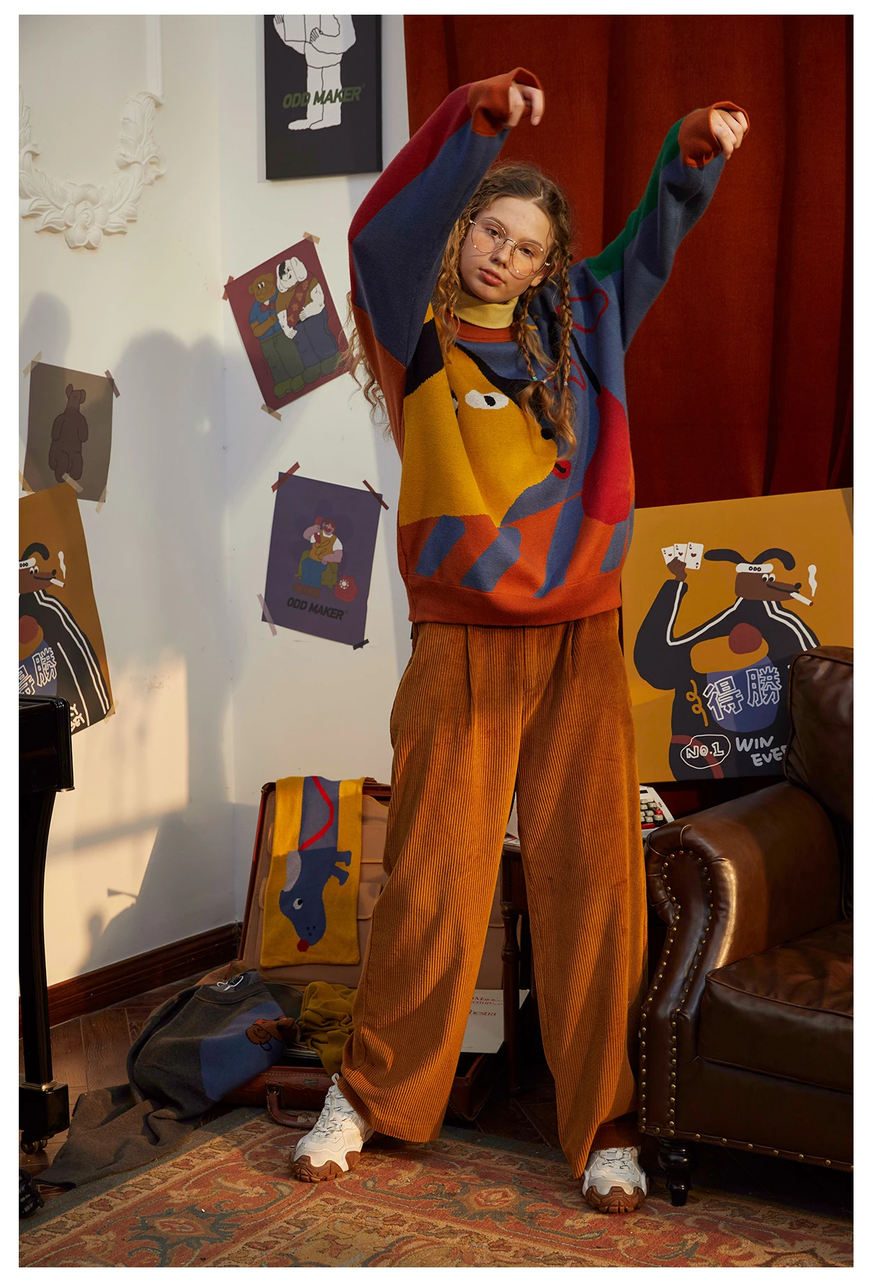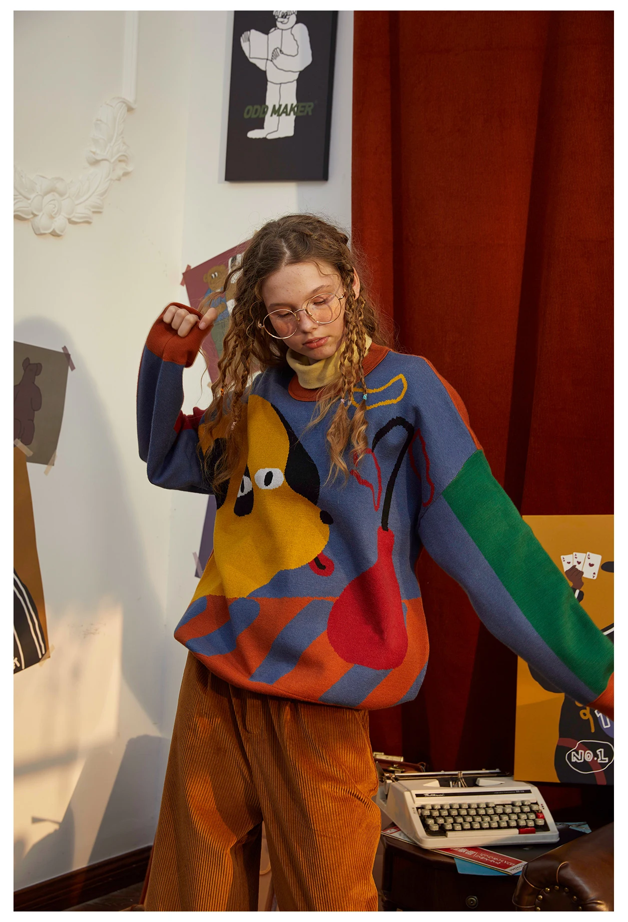 Harajuku BF loose soft Winter Design Women Pullover Sweaters Long Sleeve Cartoon Dogs Color Block High-quality Knitwear tops
