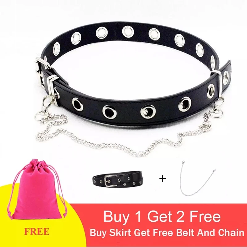 Harajuku Plaid Skirt Women 2020 New High Waist Mini Tennis Skirts Chic Uniform Chain Pocket A-line Streetwear Vintage Free Belt