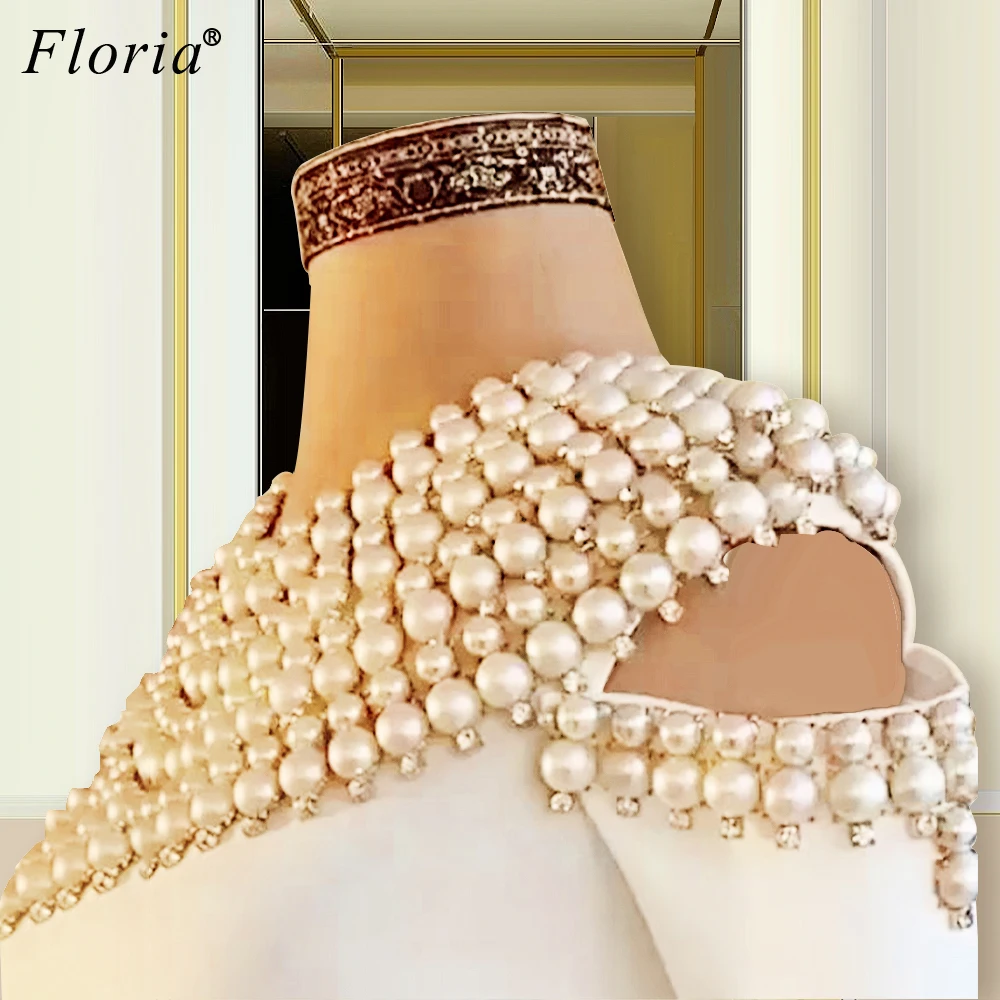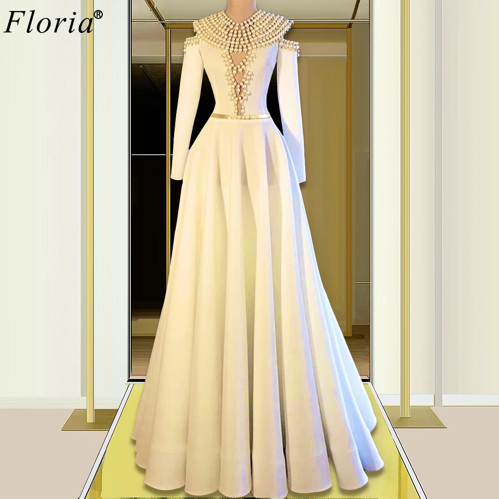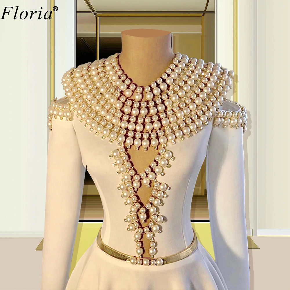 Haute Couture Pearls Celebrity Dresses 2020 A-Line Long Sleeves Formal Evening Dresses Evening Wear Women Prom Party Dress Robes