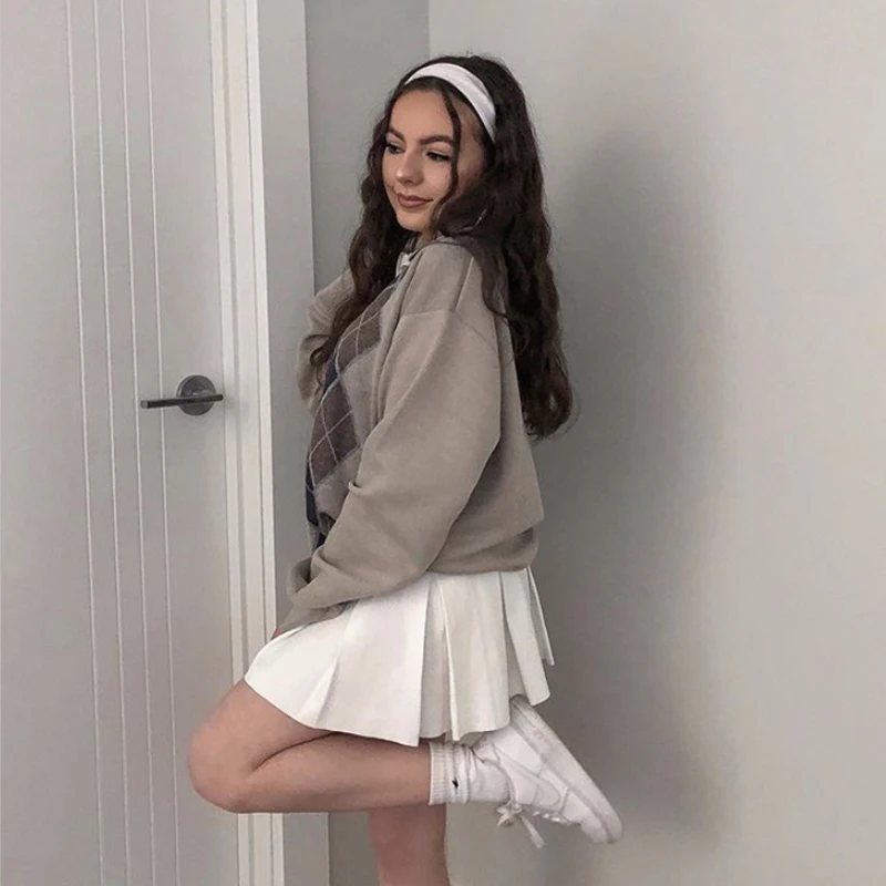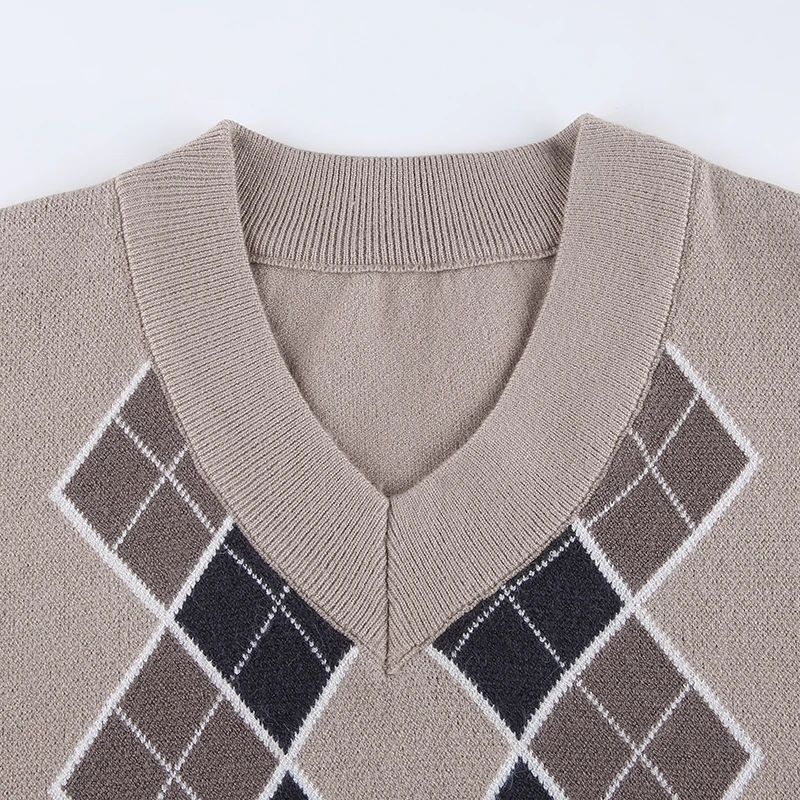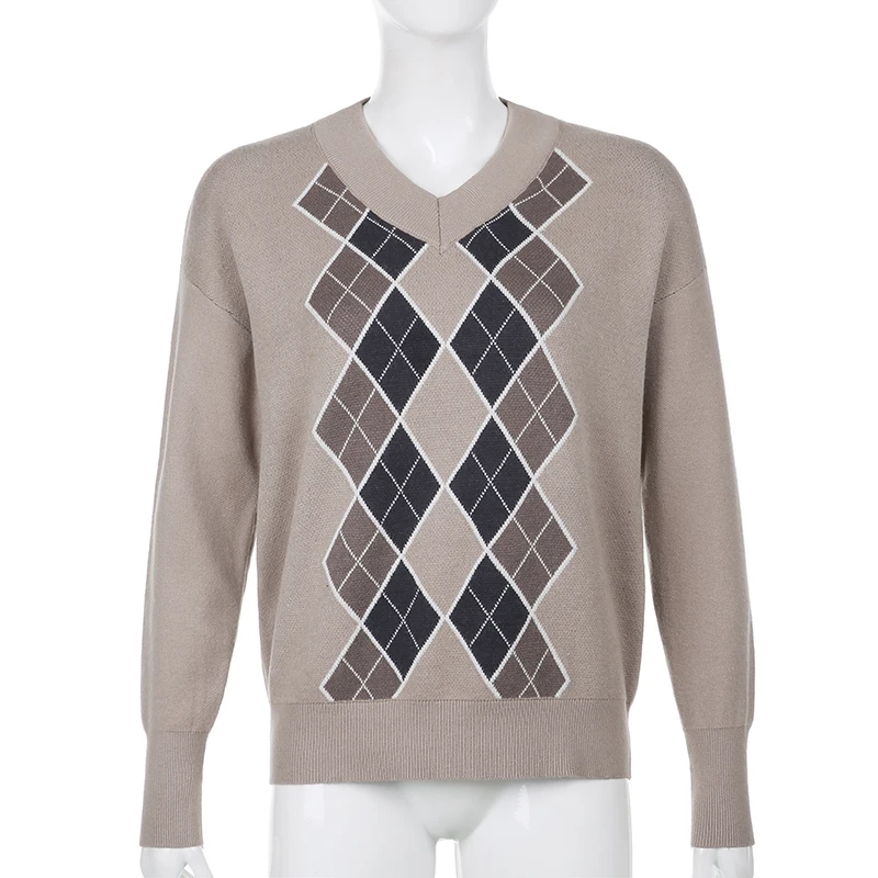 HEYounGIRL Preppy Style Vintage V Neck Sweater Women Autumn Casual Argyle Plaid Y2K Jumper Female Korean Fashion Pullover Winter