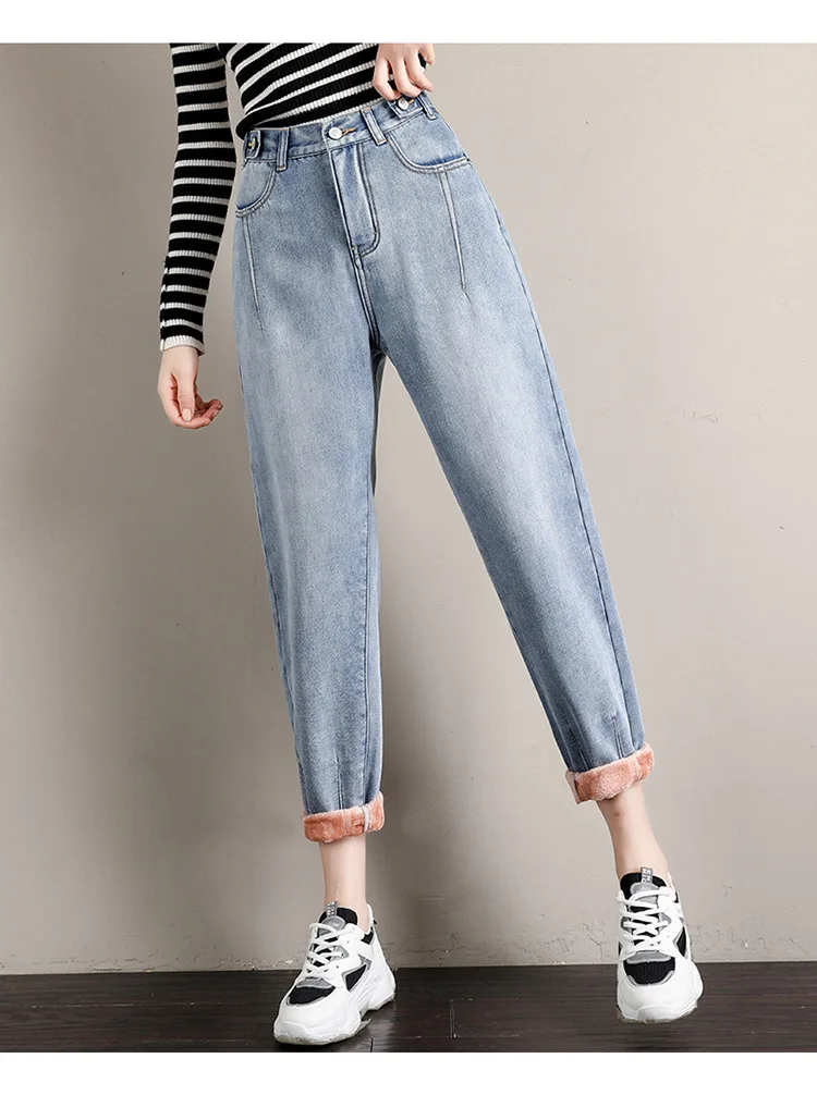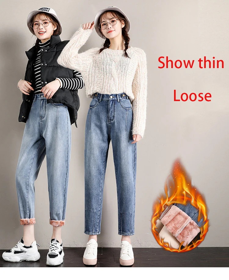 High Waist Warm Jeans For Women Denim Female Winter Jeans Pants Jean Ladies Trousers Casual Velvet Plus size Warm Pants