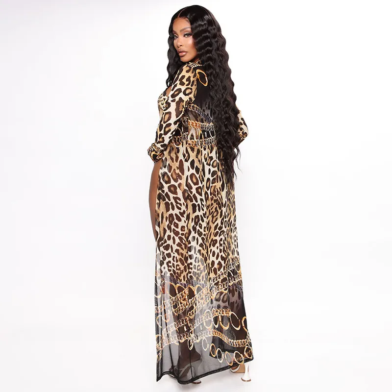 Hot selling sexy fashion leopard print with long sleeve coat 2pc suit for women