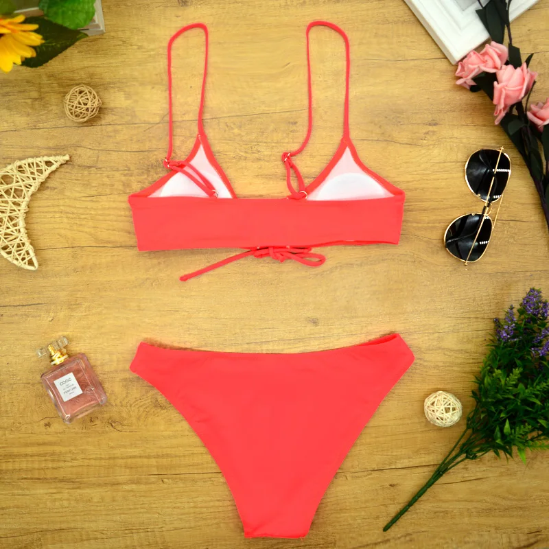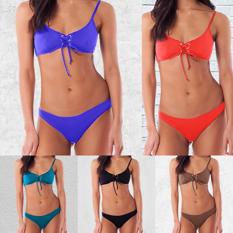 Hot style female bikini swimsuit sexy pure color bird’s eye bikini female 0072