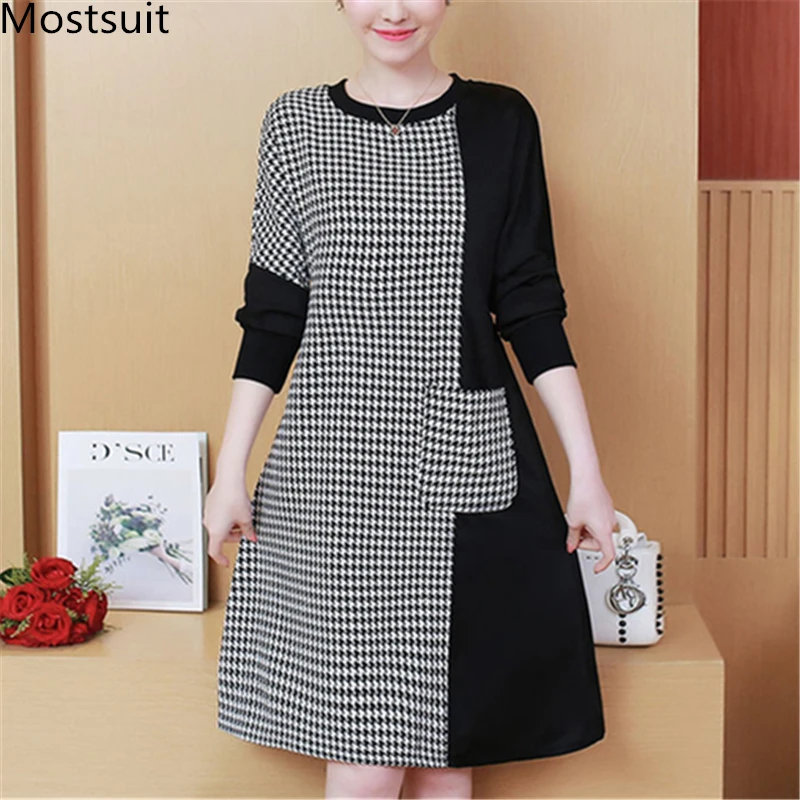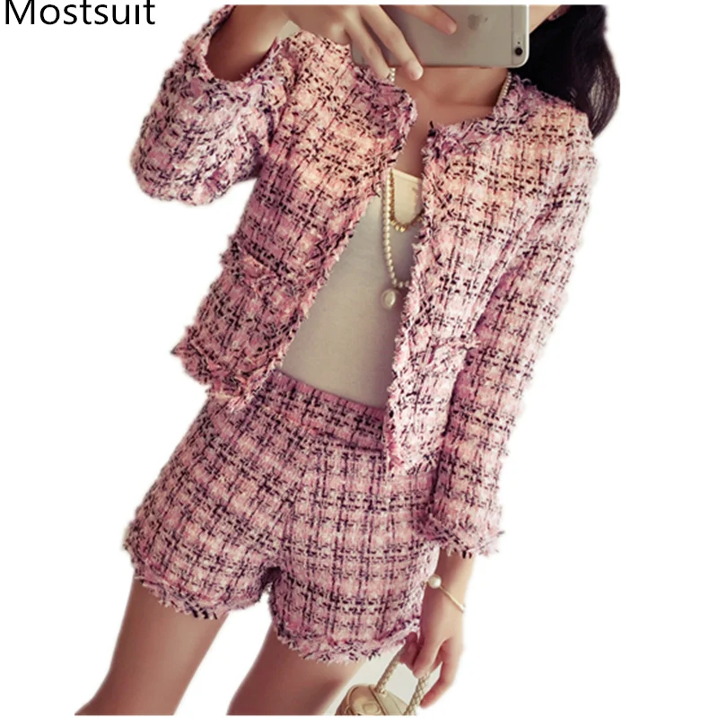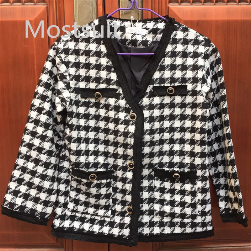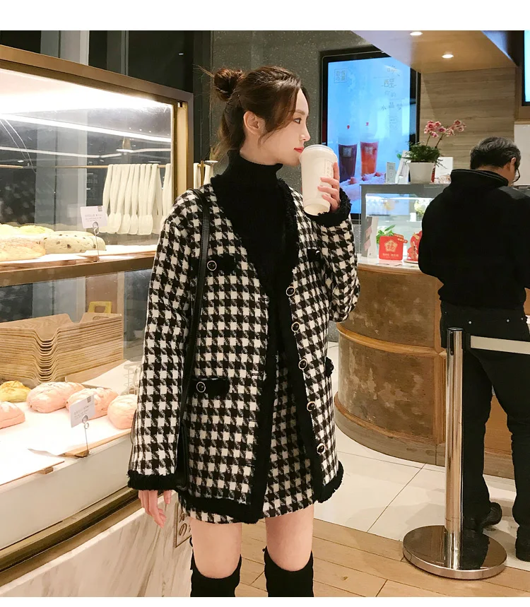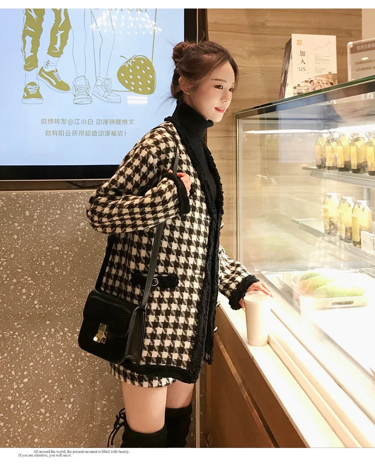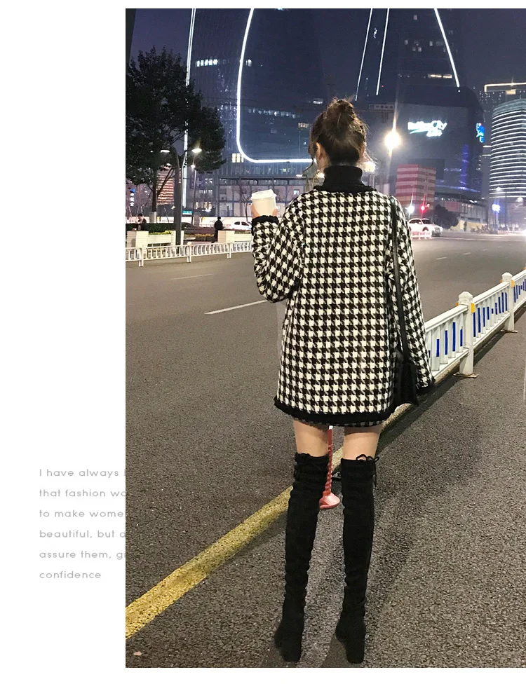 Houndstooth Vintage Two Piece Sets Outfits Women Autumn Cardigan Tops And Mini Skirt Suits Elegant Ladies Fashion 2 Piece Sets