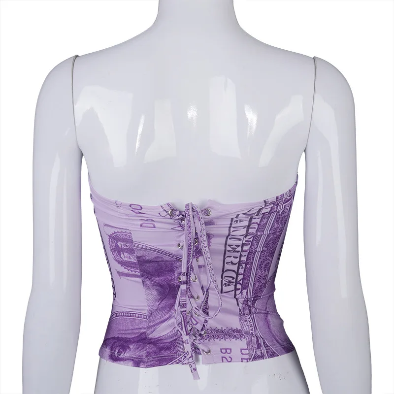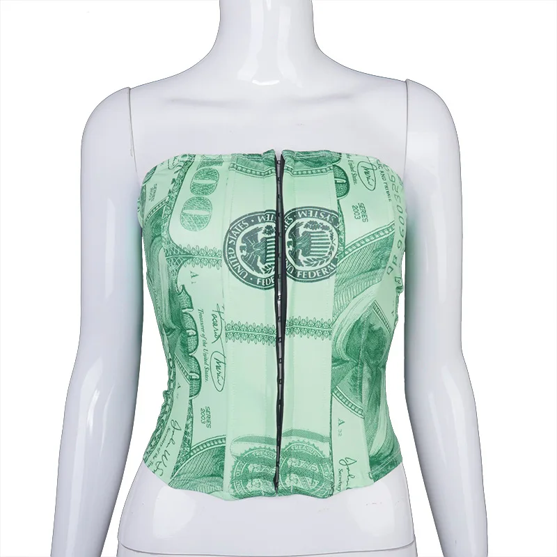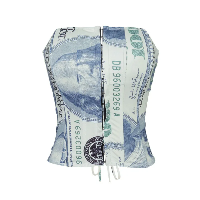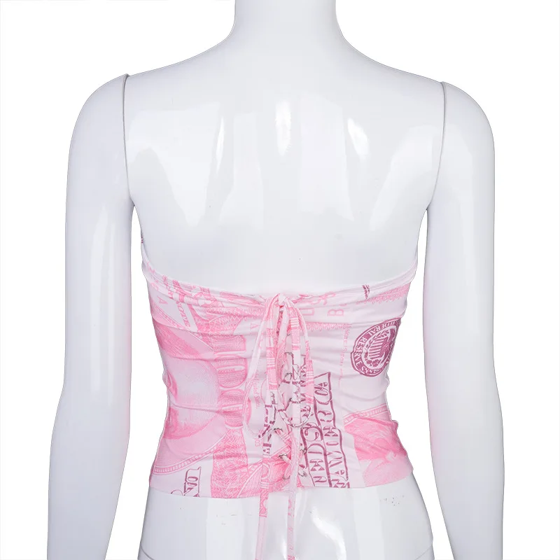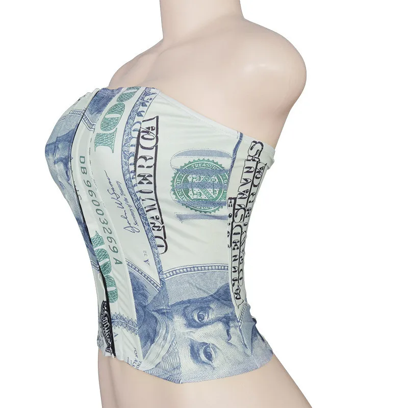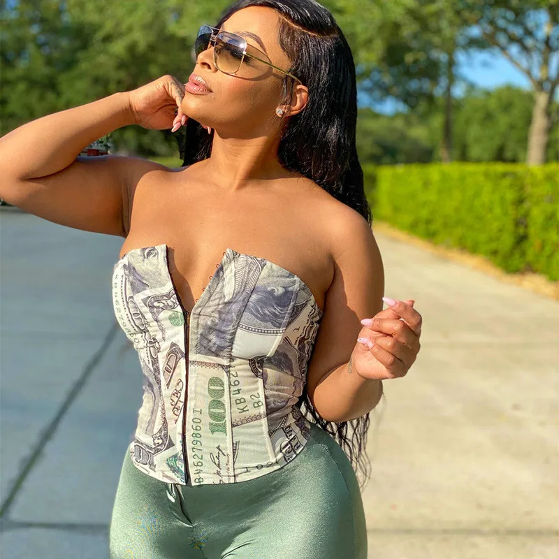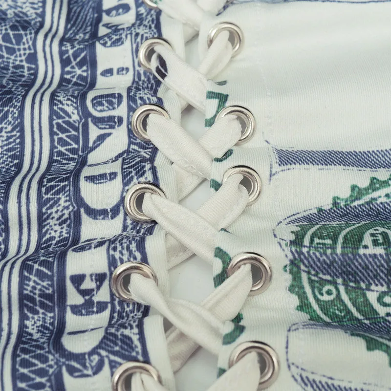 Hugcitar 2020 Money Print Bandage Sexy Corset Crop Tank Top Autumn Winter Women Fashion Streetwear Outfits Tees