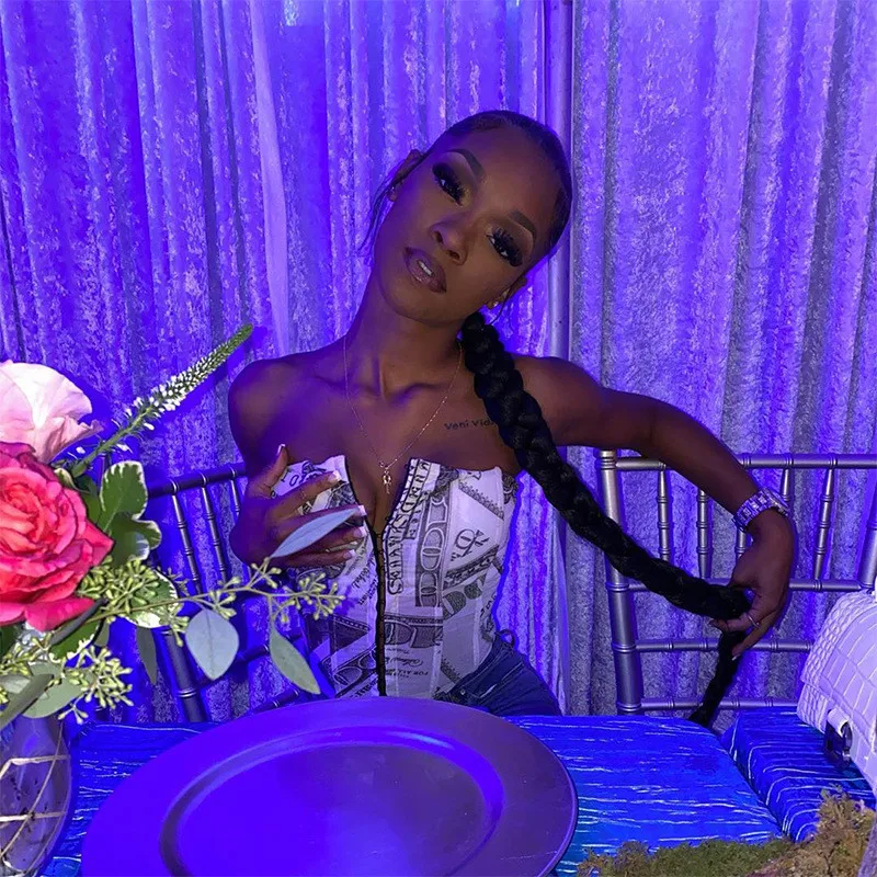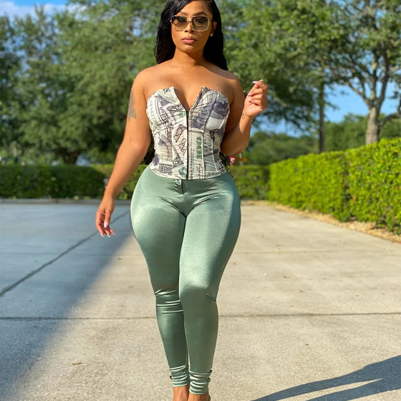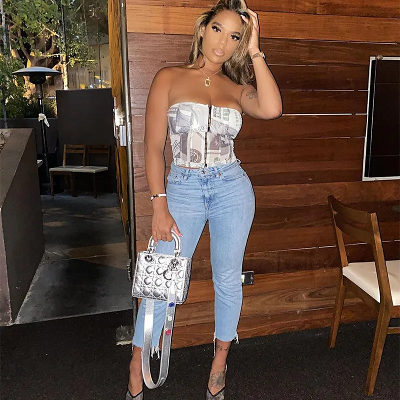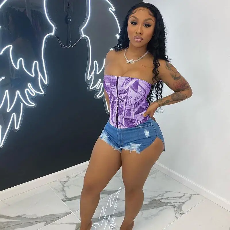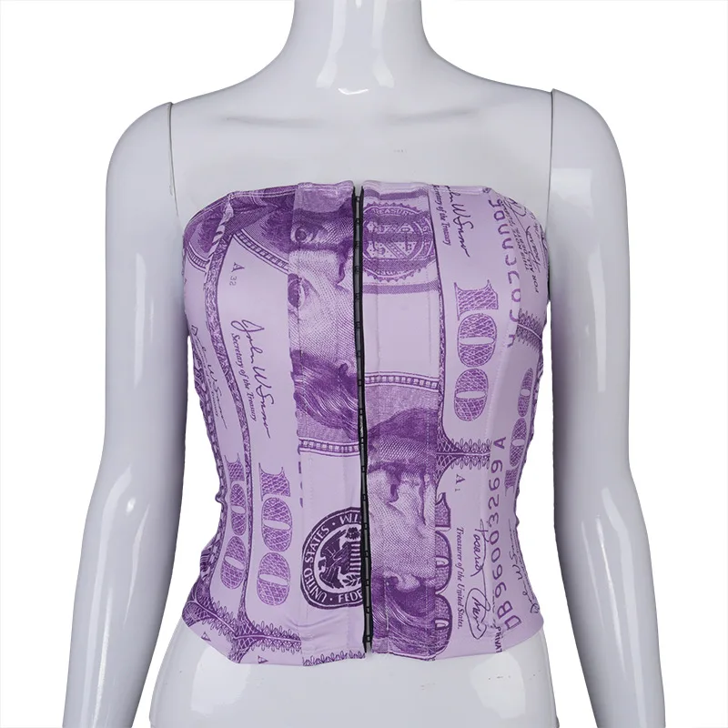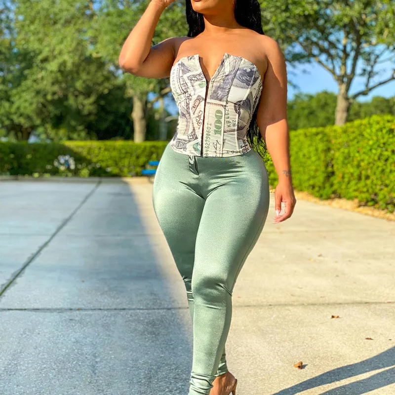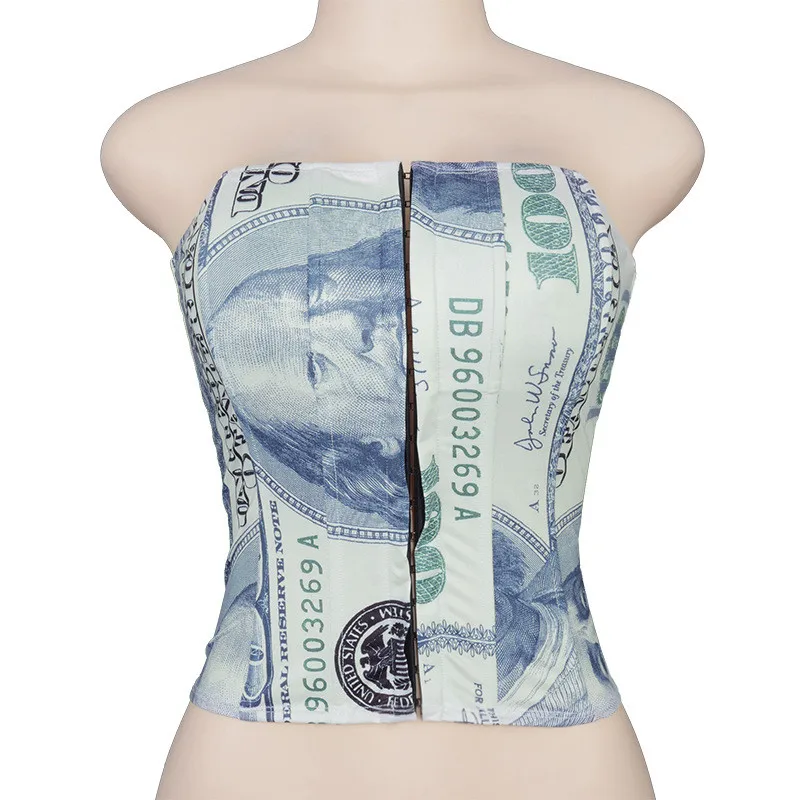 Hugcitar 2020 Money Print Bandage Sexy Corset Crop Tank Top Autumn Winter Women Fashion Streetwear Outfits Tees