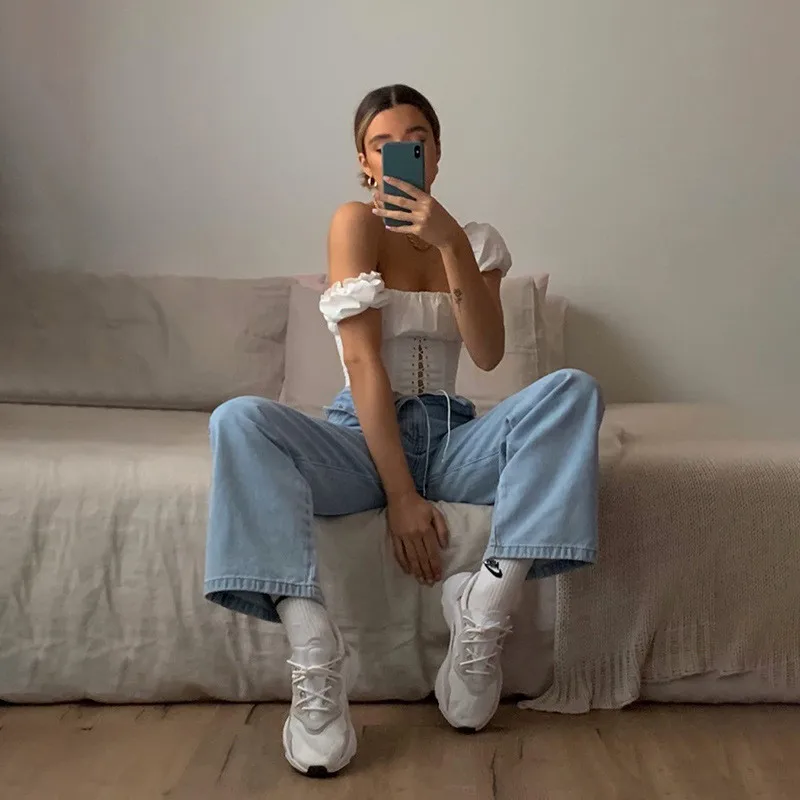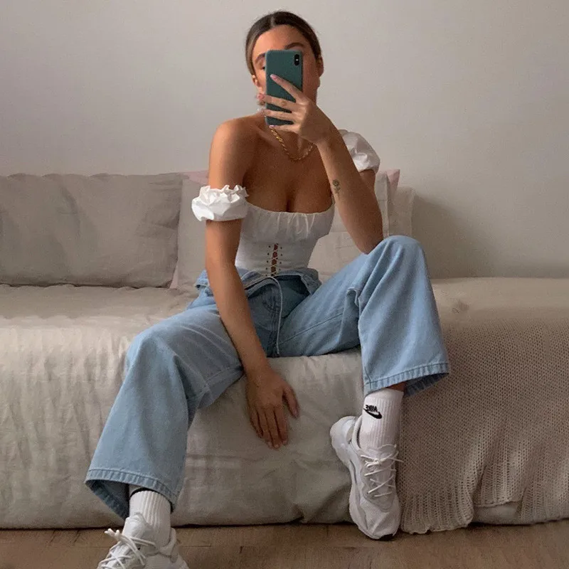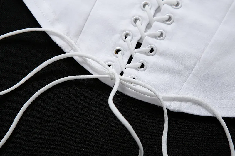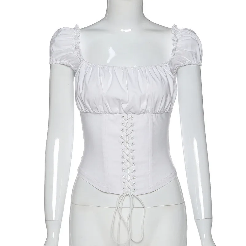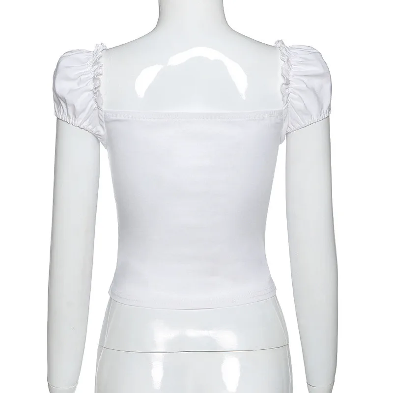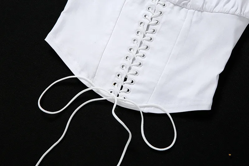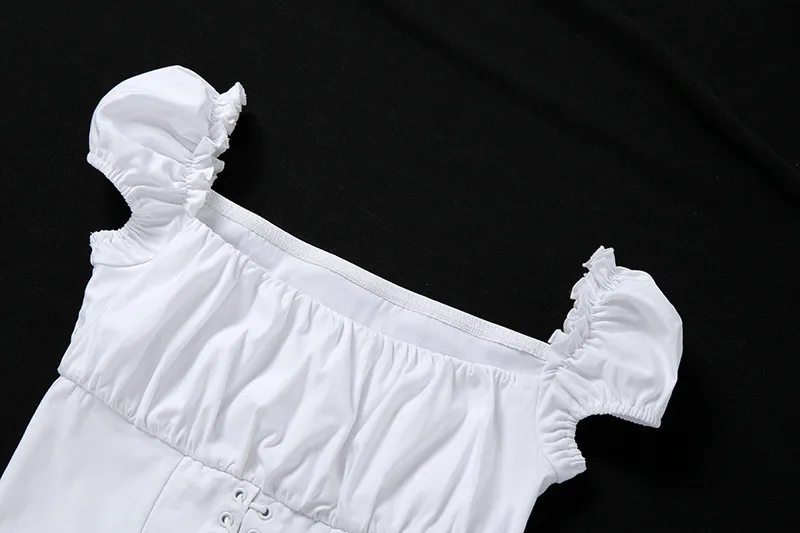 Hugcitar 2020 short puff sleeve patchwork bandage sexy crop tops summer women fashionstreetwear outfits T-shirts
