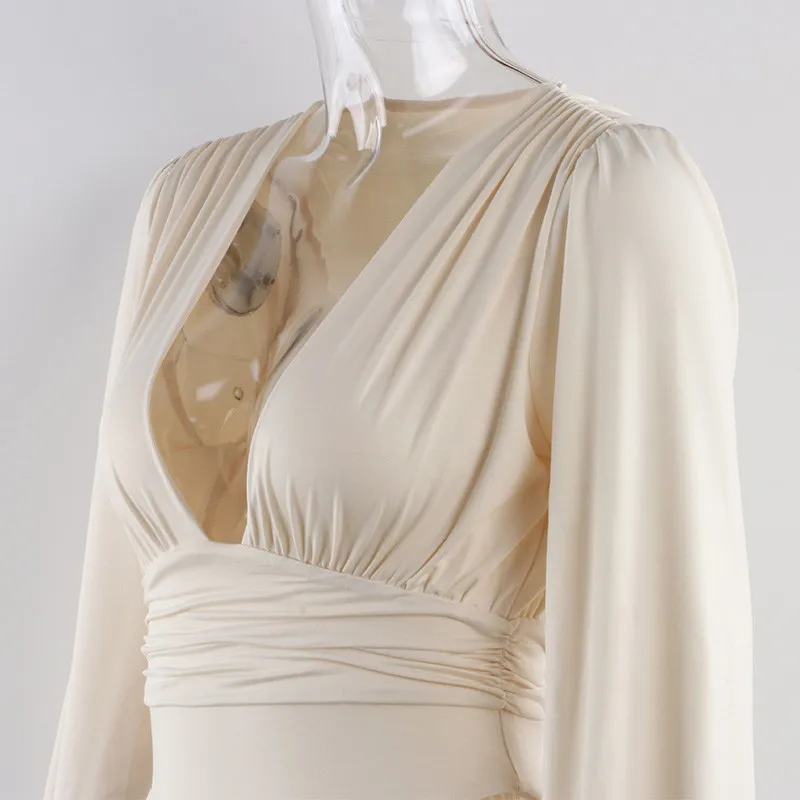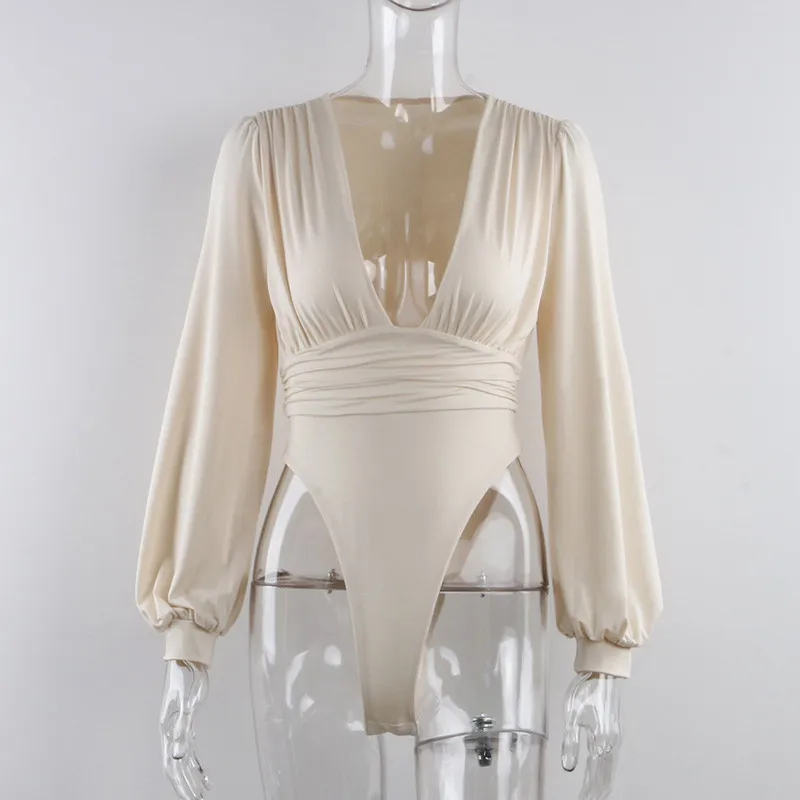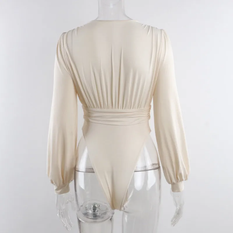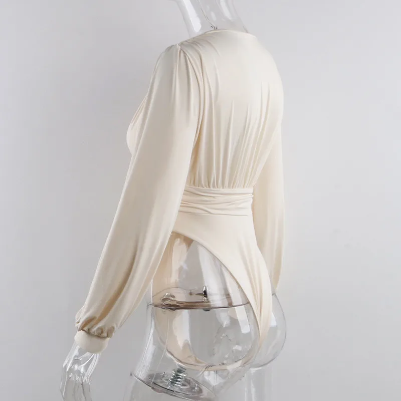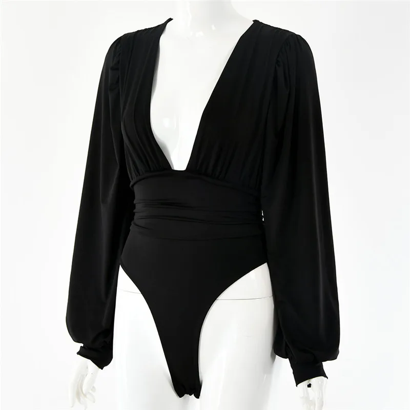 Irene V Neck Skinny Bodysuit Women Ruched Party Autumn Winter Long Sleeve Sexy Rompers Womens Jumpsuit 2020 Black Bodys