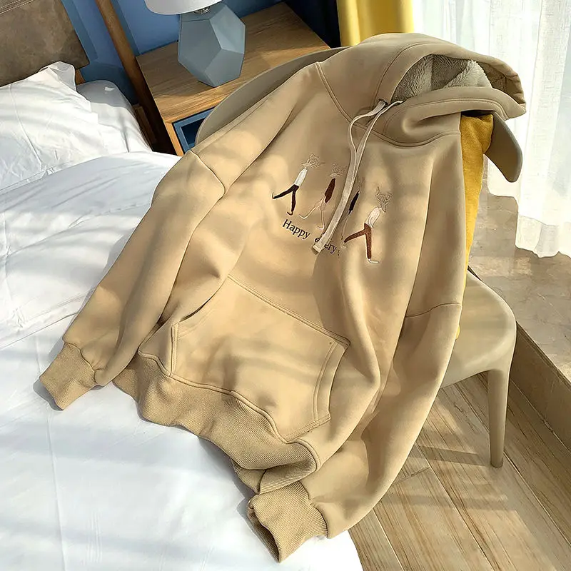 Jacket women solid color hoodies 2020 autumn winter imitation lamb wool korean loose plus velvet thick zipper sweatshirt tops