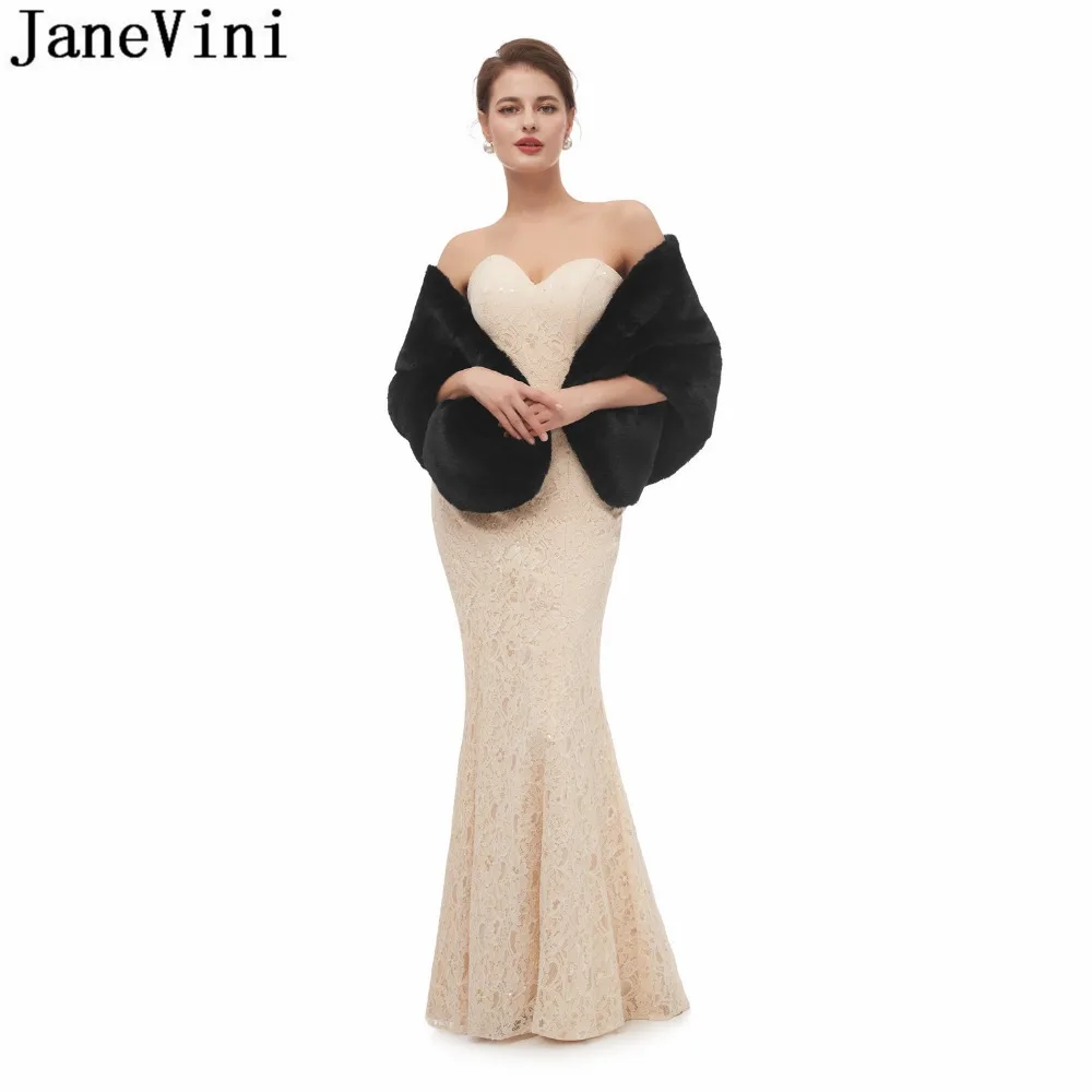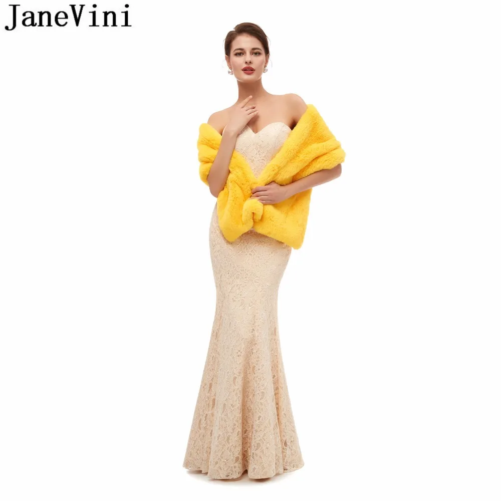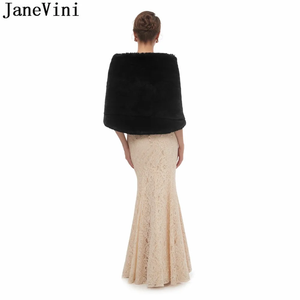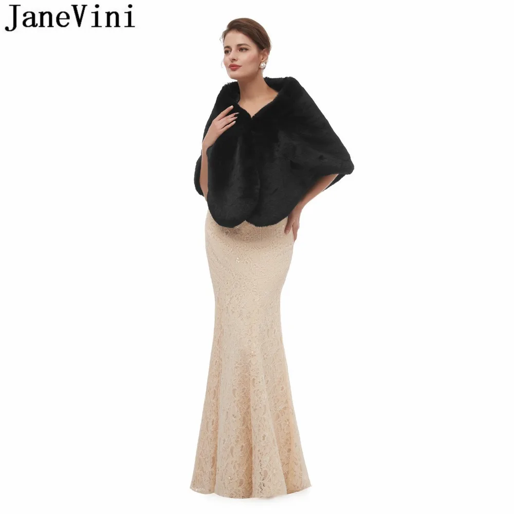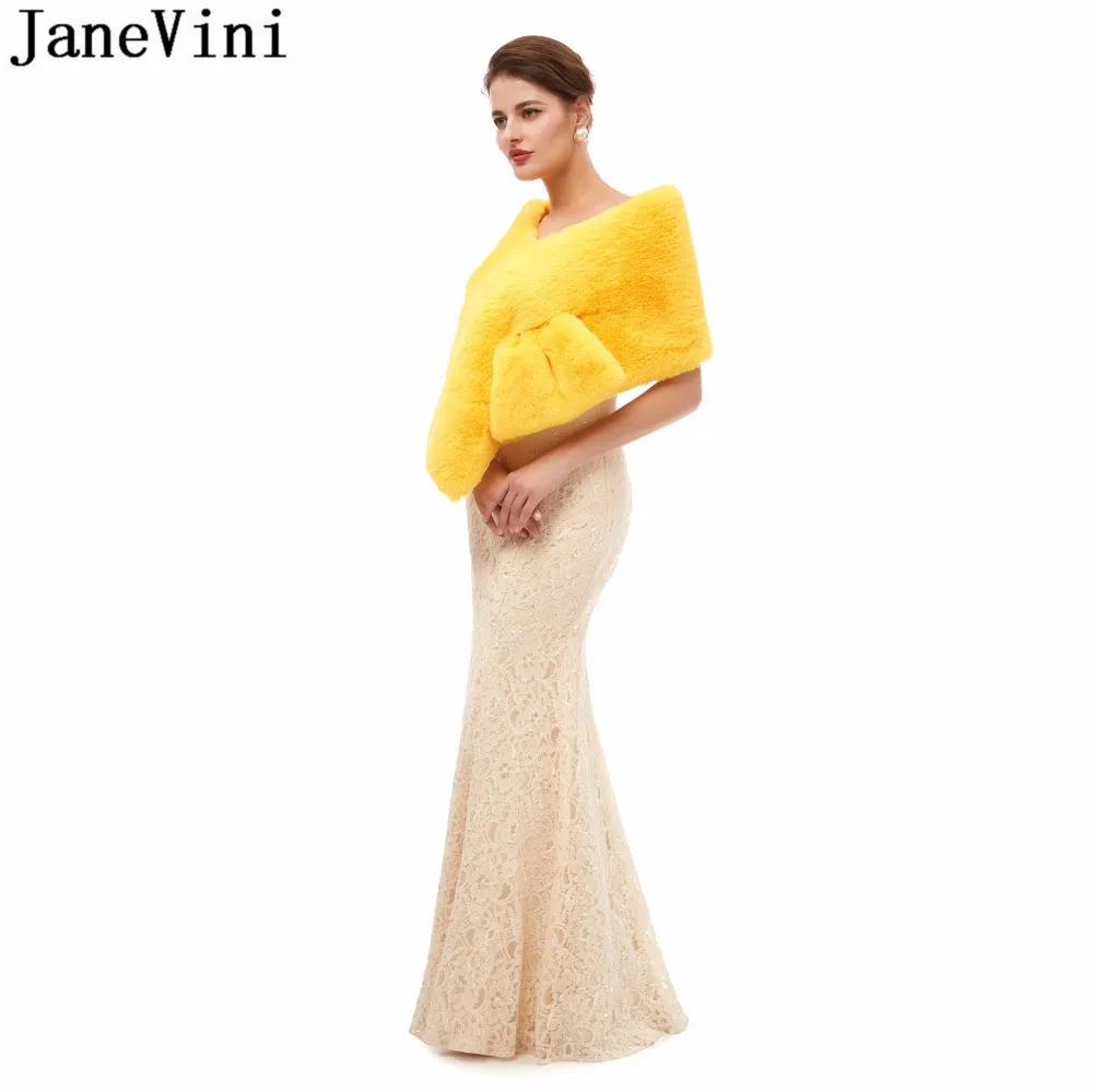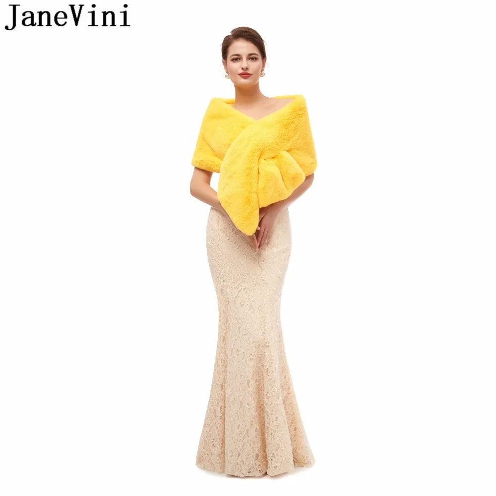 JaneVini 2020 Yellow Faux Fur Stoles Winter Warm Black Evening Prom Dress Fake Fur Bridal Shawl Wraps Jacket Bolero mariage cape