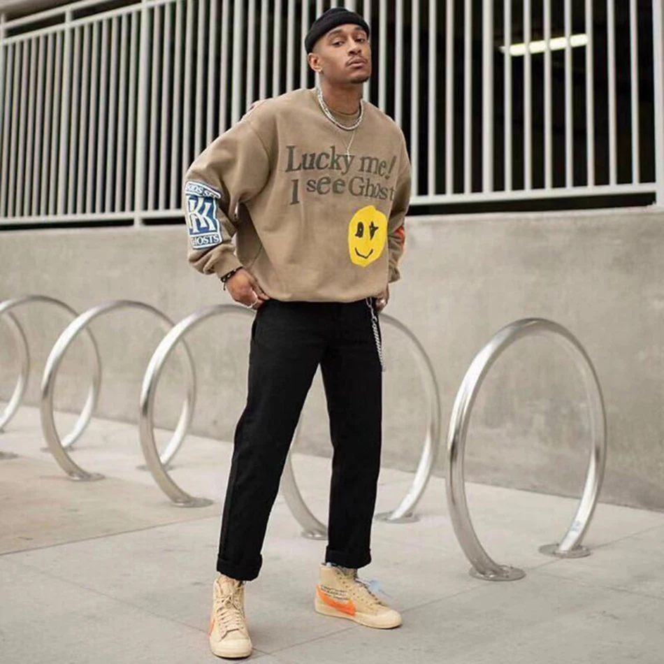 Kanye West Graffiti Letter Print Plus Velvet Sweatshirt Men And Women Harajuku Fleece Hoodie Hip Hop Stranger Things Hooded