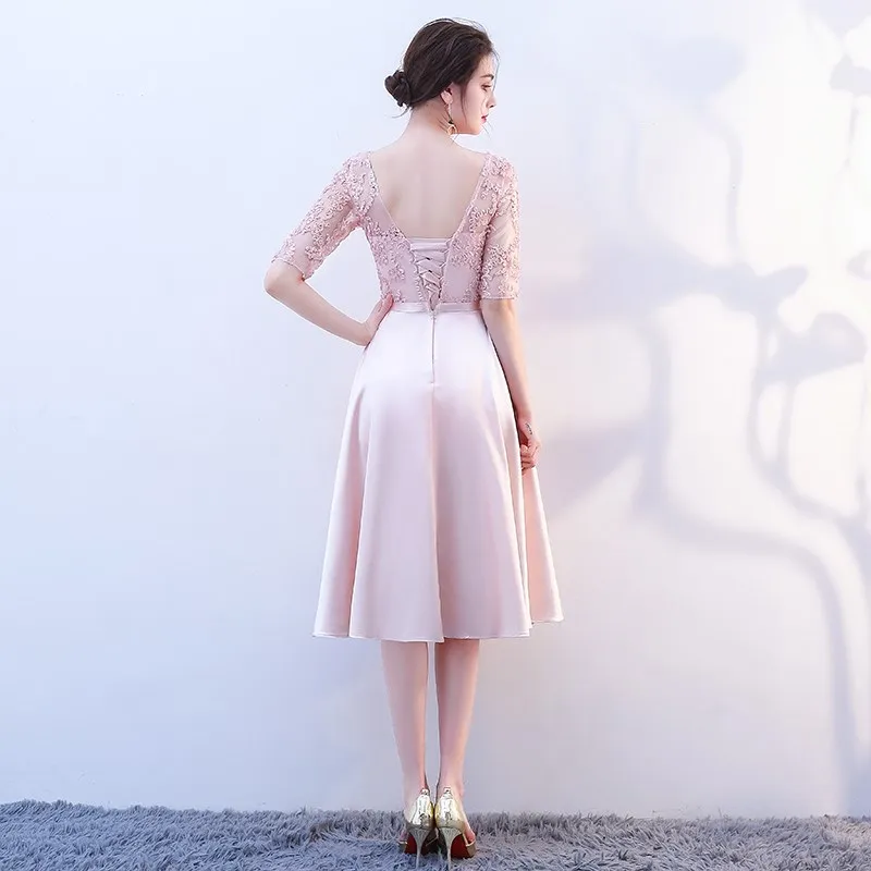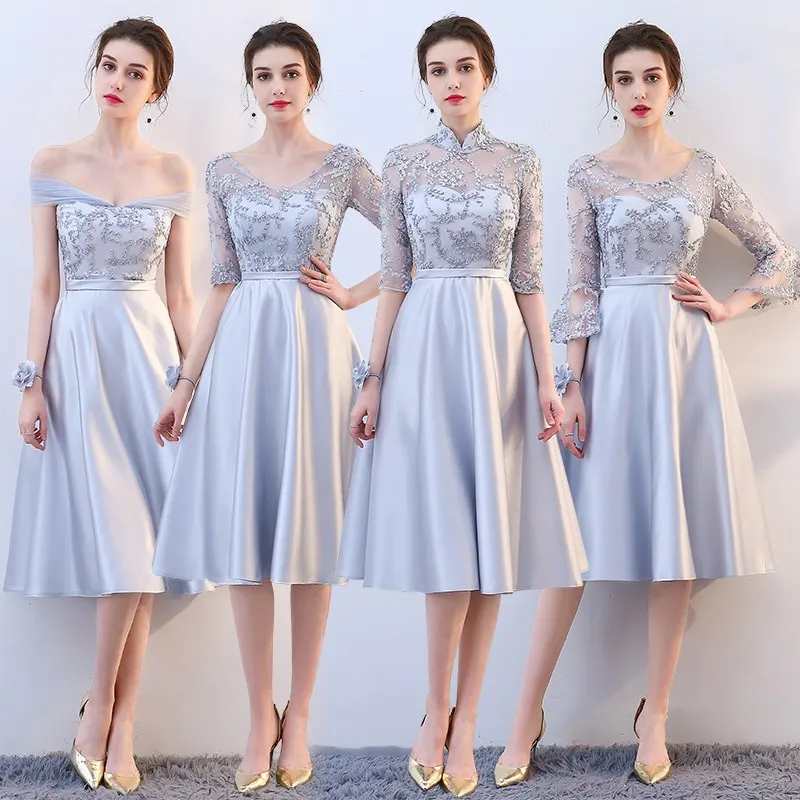 KBS-025G#stand collar grey lace up Bridesmaid Dresses wedding party prom dress 2020 spring new wholesale cheap Bridal clothing