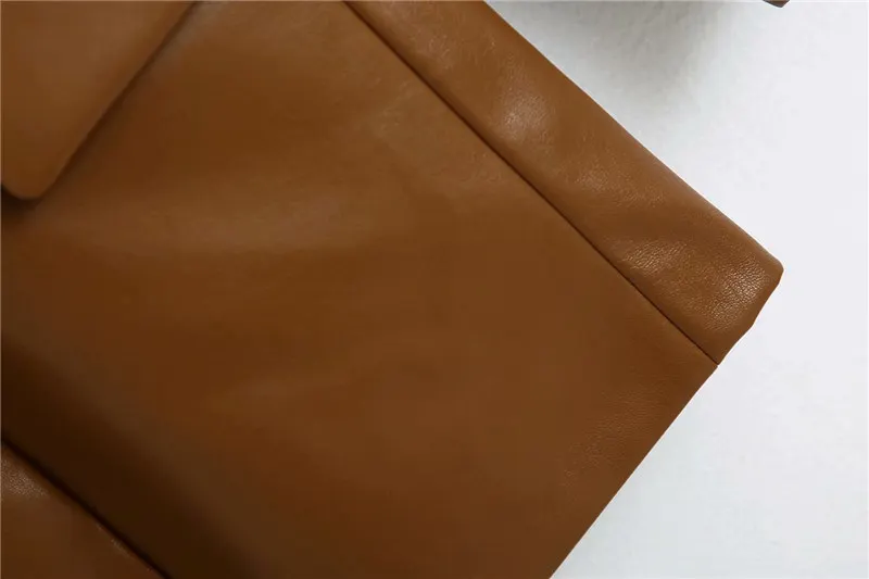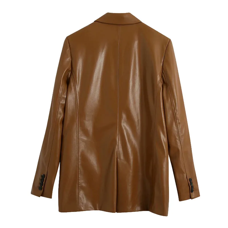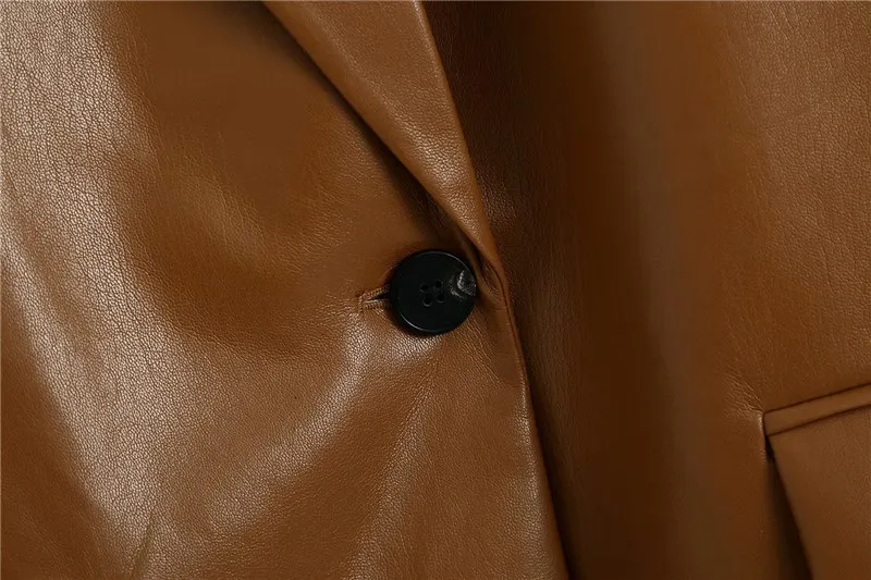 KPYTOMOA Women 2020 Fashion Faux Leather Single Button Blazers Coat Vintage Long Sleeve Pockets Female Outerwear Chic Tops