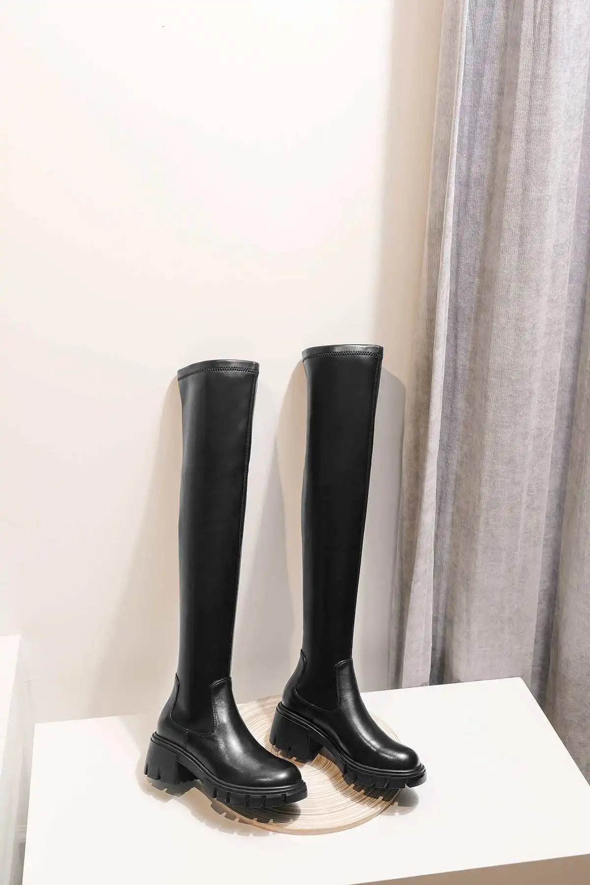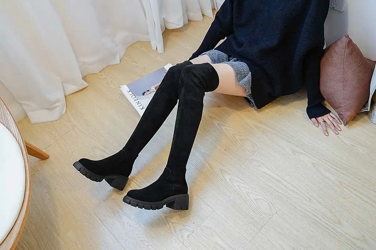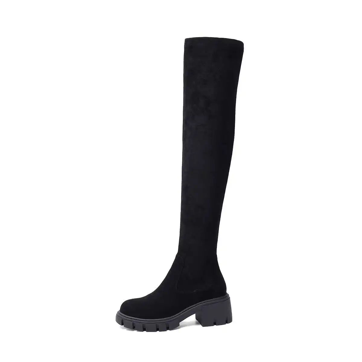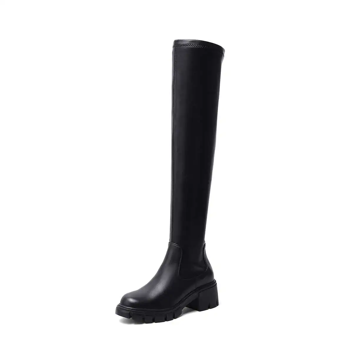 krazing pot simple style popular cow leathe stretch boots round toe high heels winter women keep warm solid thigh high boots L10