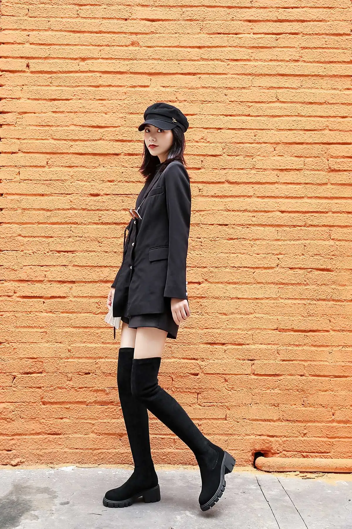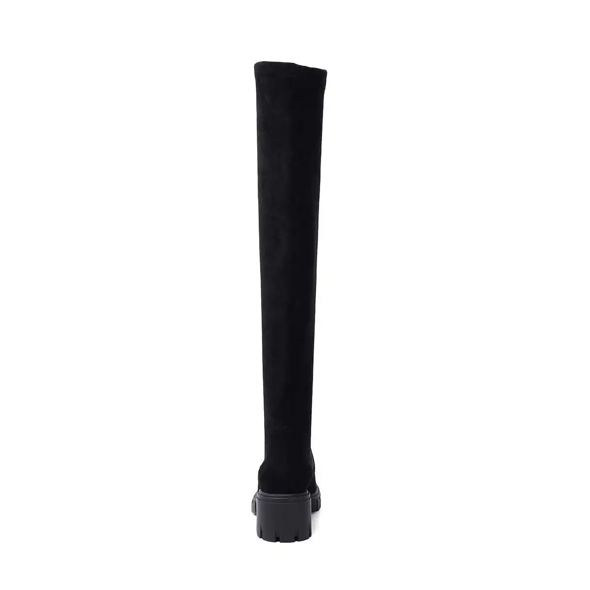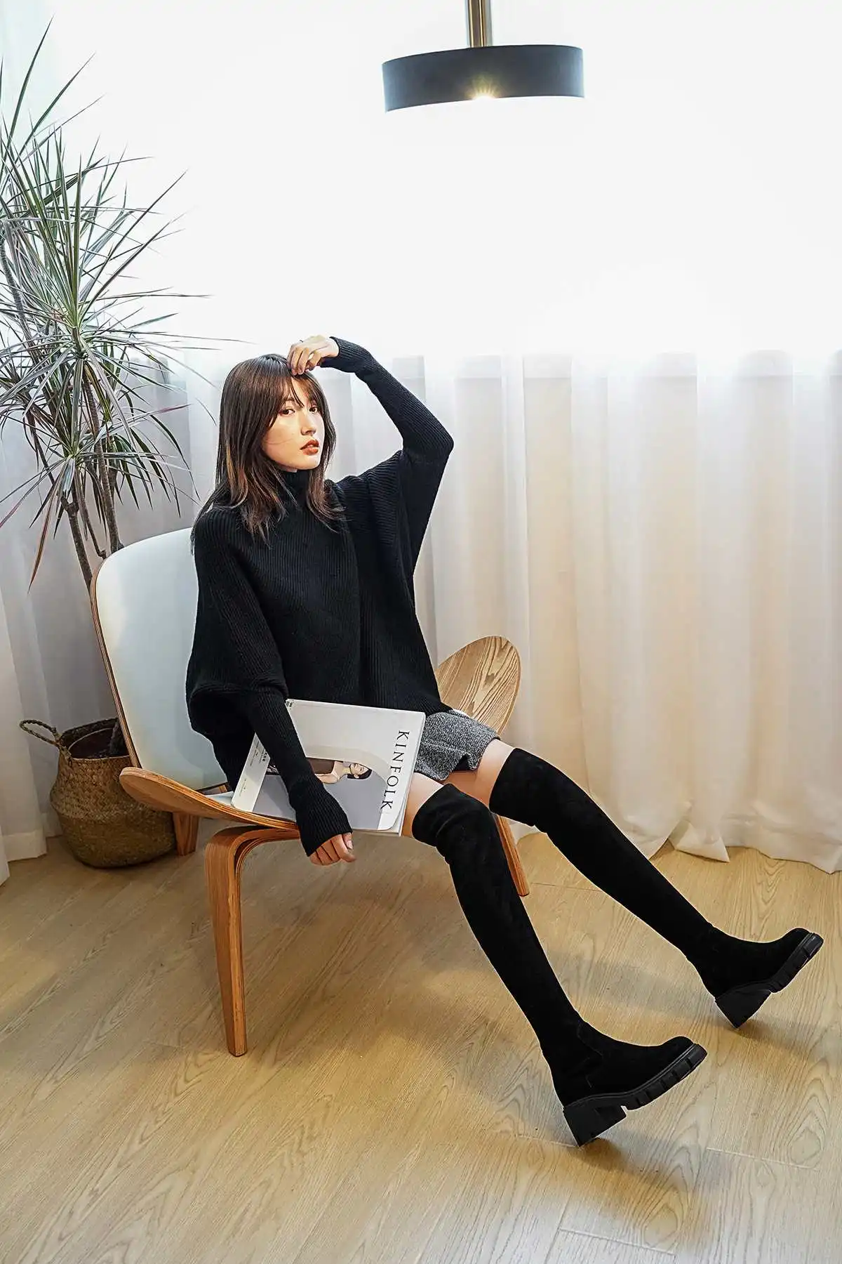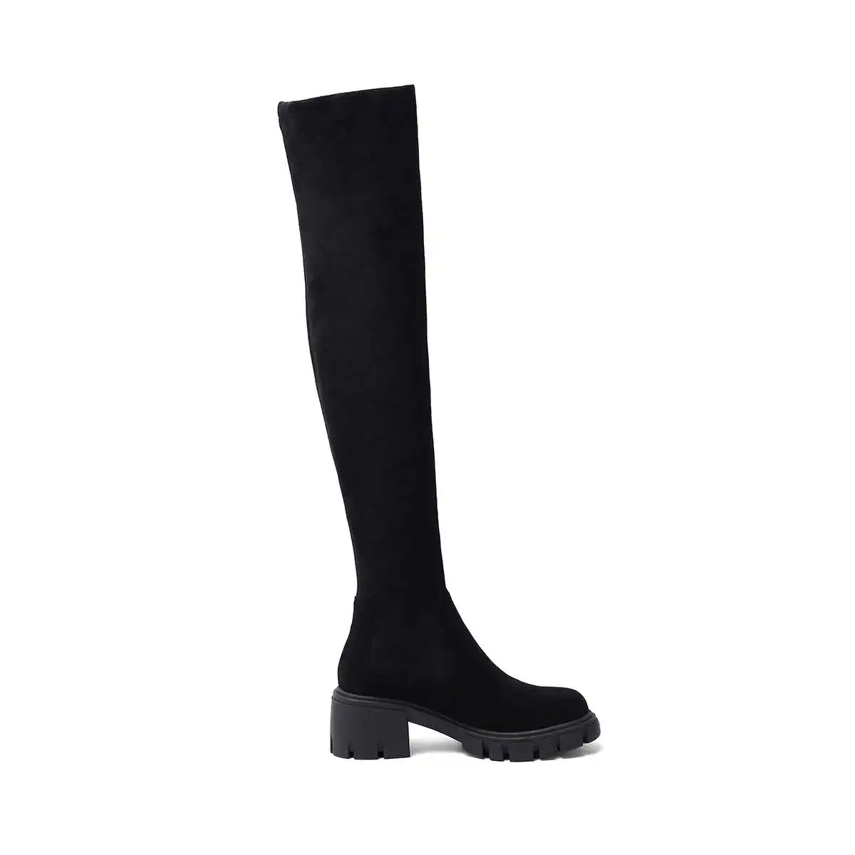 krazing pot simple style popular cow leathe stretch boots round toe high heels winter women keep warm solid thigh high boots L10