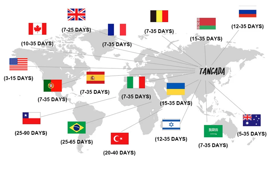 Canada, Europe 10-30 Business days