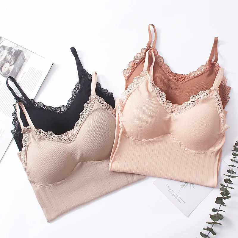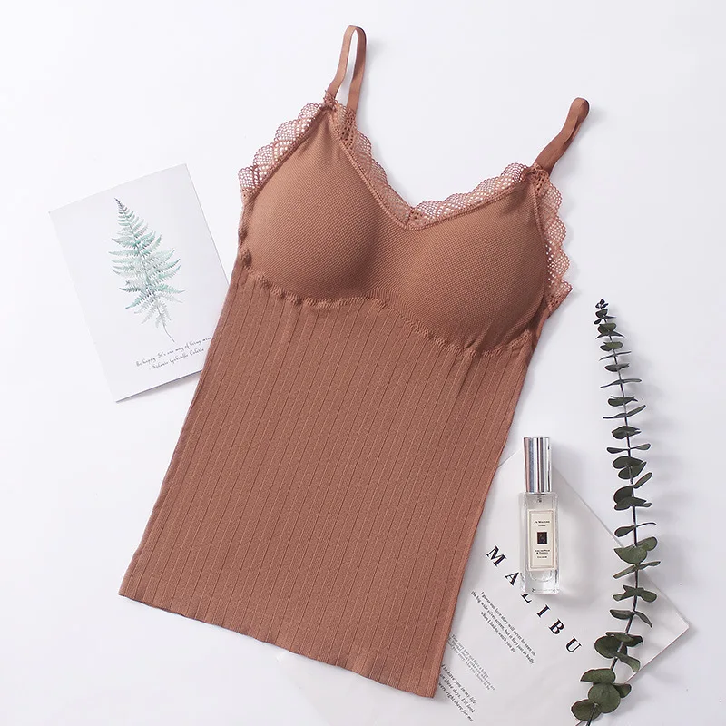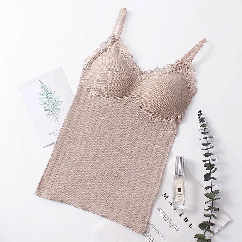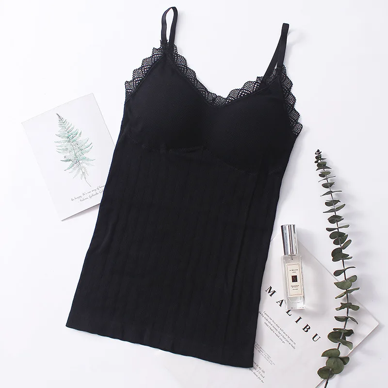 Lace Tank Tops Women Winter Thermal Underwear Plus Size Female Bottoming Camis Top Underwear Sleeveless Padded Camisole Femme