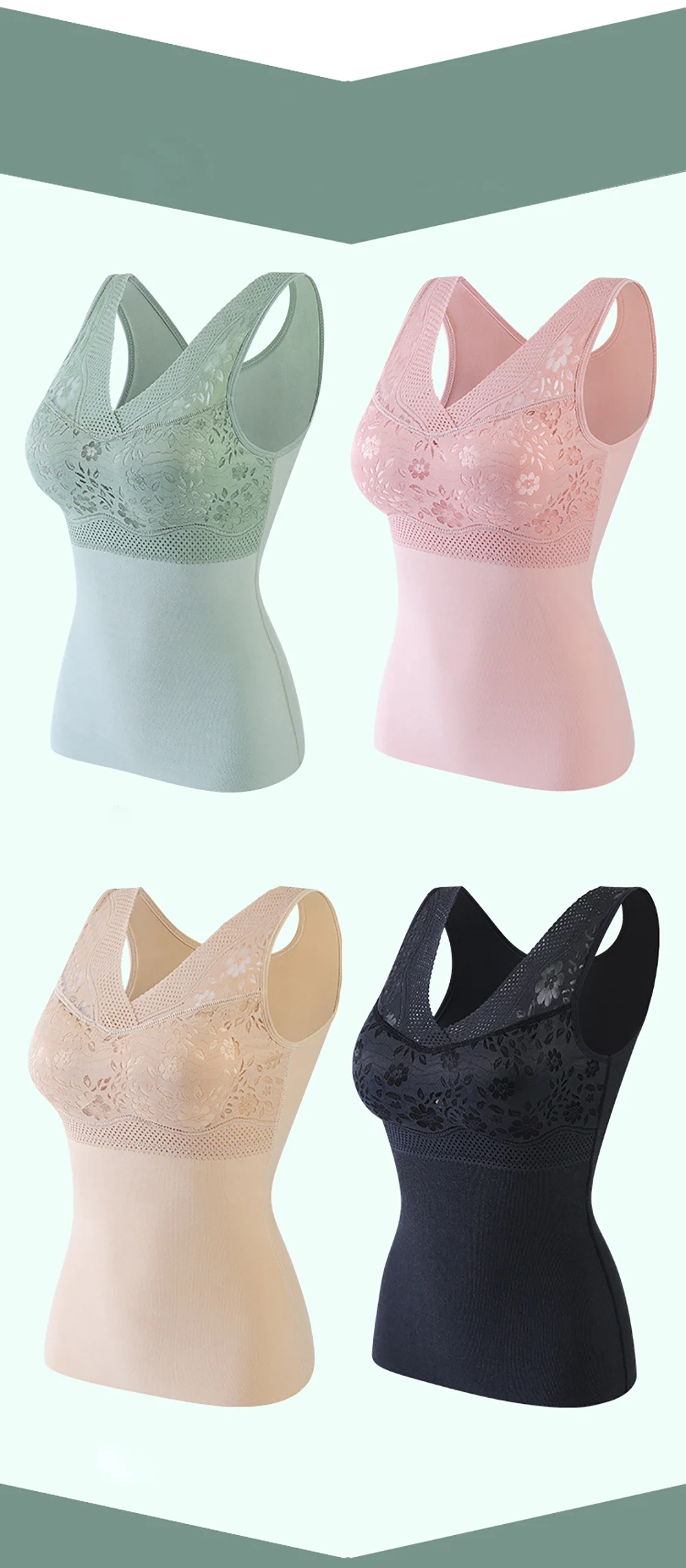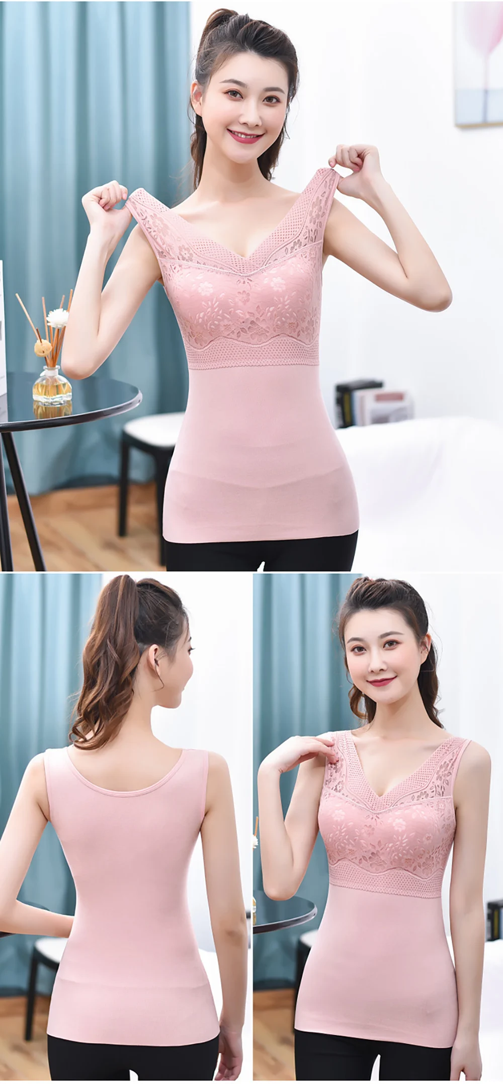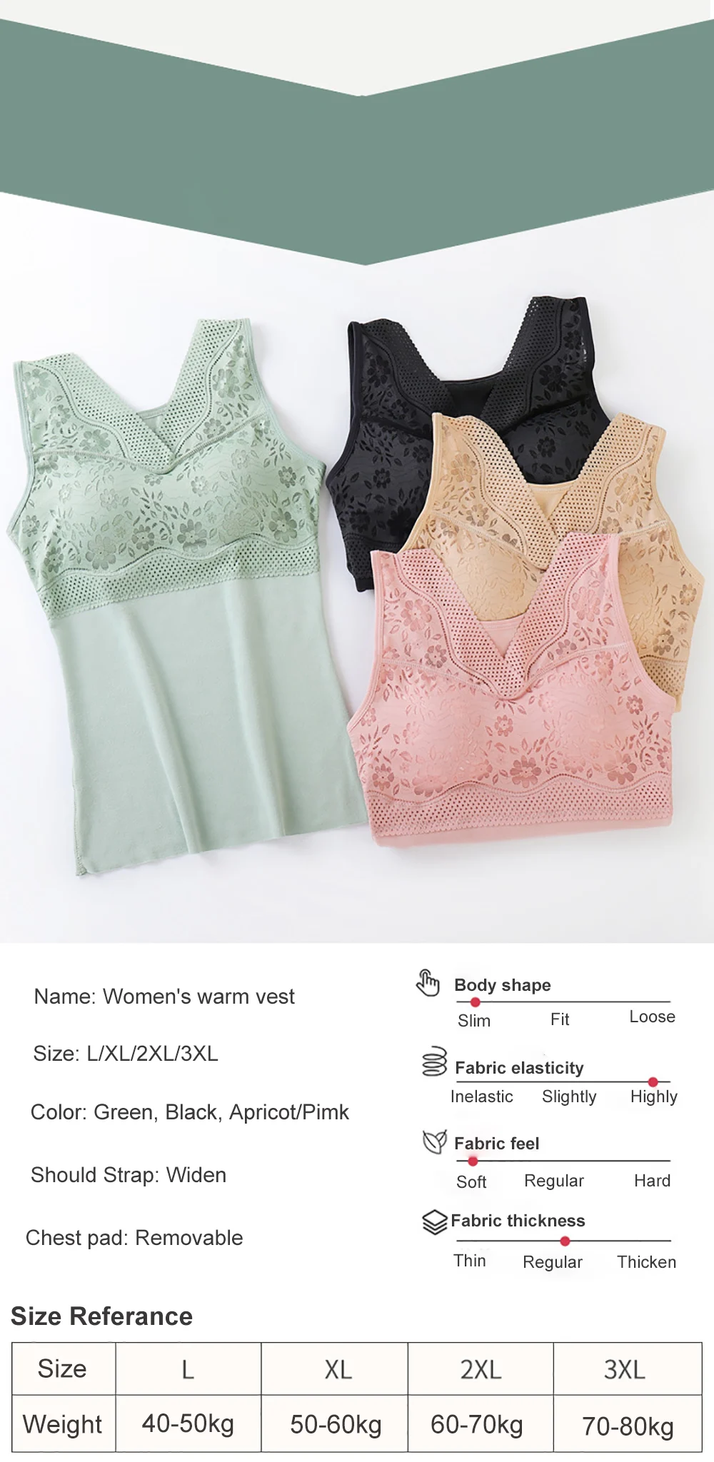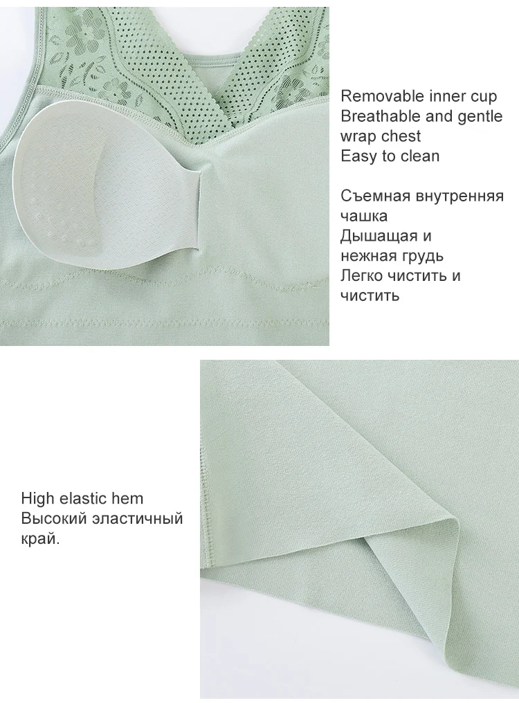 Lace Underwear Women Tank Crop Top Beauty Back Female Sexy Lingerie Gathered Plus Size Seamless Padded Vest Warm Breathable Cami