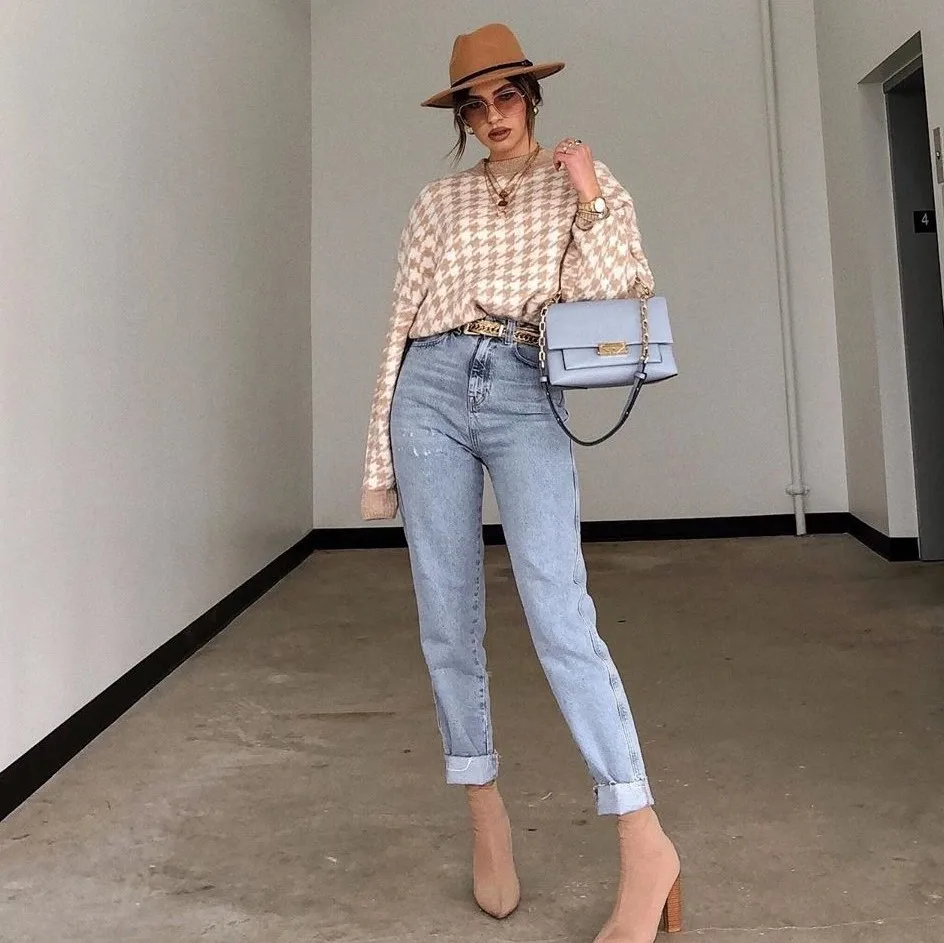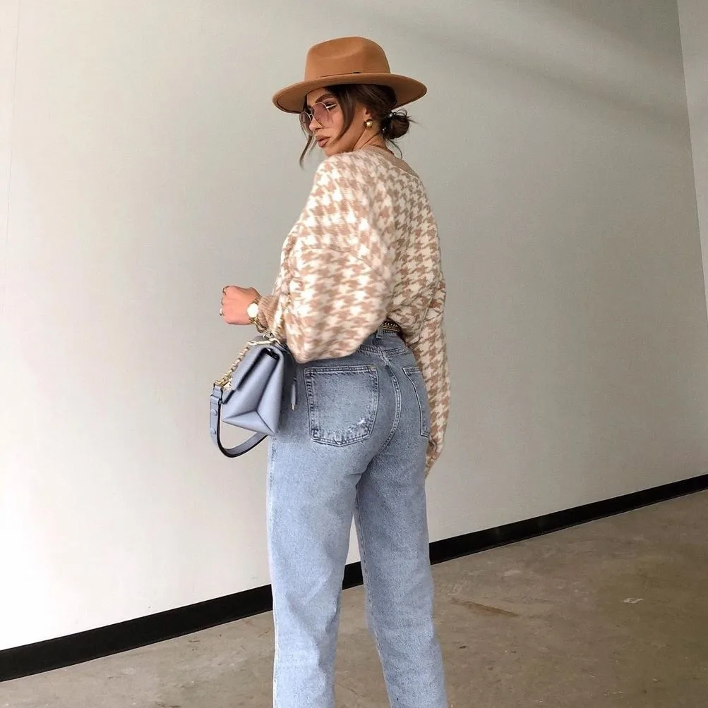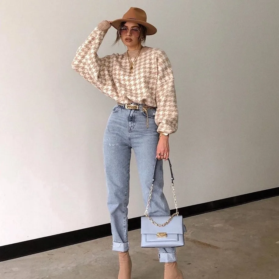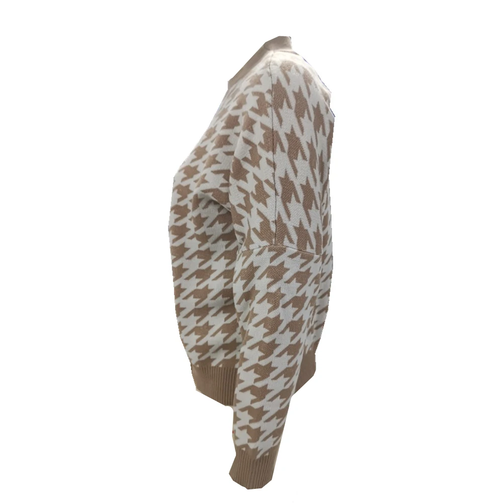 Ladies Knitted Autumn Winter Sweater Women Pullover Casual Houndstooth Warm Soft Slim Sweaters Female Pull Knitwear Retro Jumper