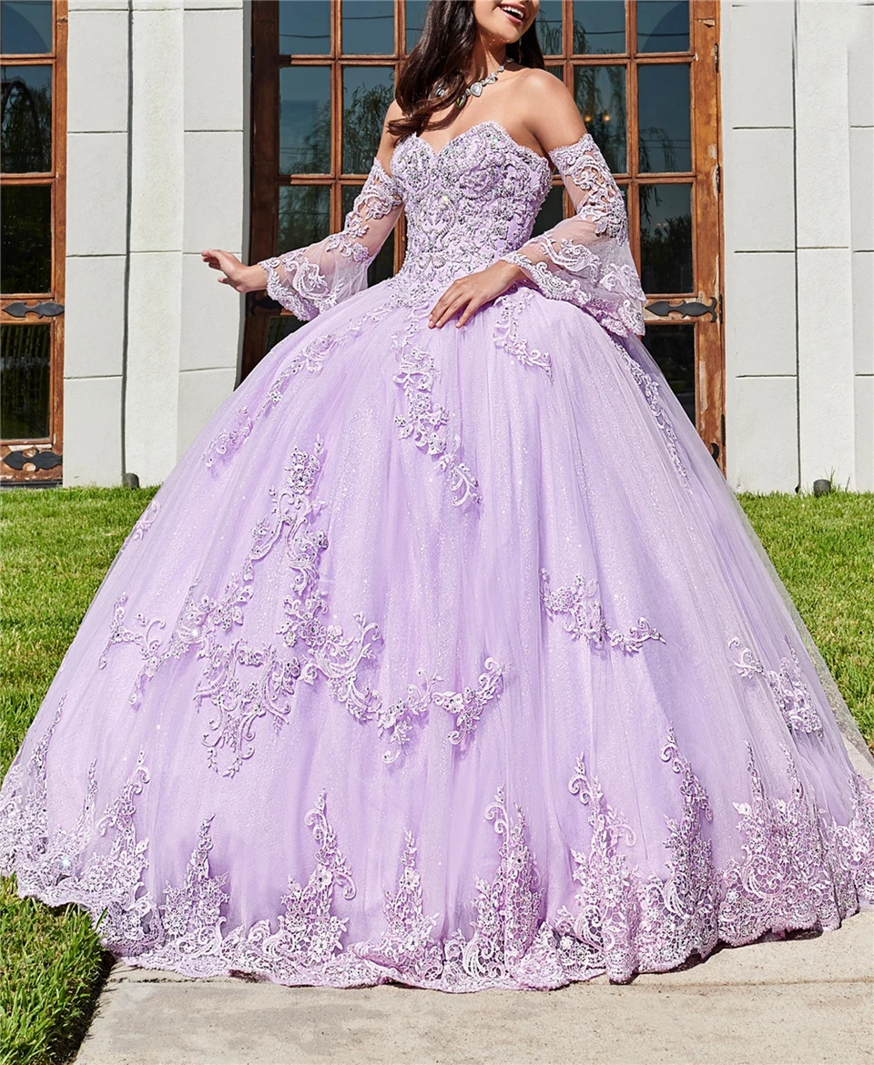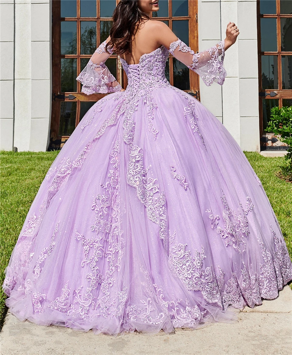 Lavender Off The Shoulder Quinceanera Dresses 2020 Ball Gown Tulle 15 anos Fluffy Dresses Sweet 18 Vestidos Elegant Prom Dress