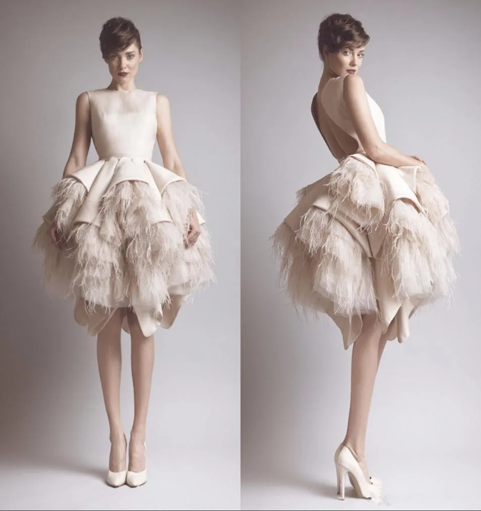 Little White Dress 2020 Champagne Short Prom Party Dresses Luxury Feather Ruffles Tiered skirt evening homecoming dress