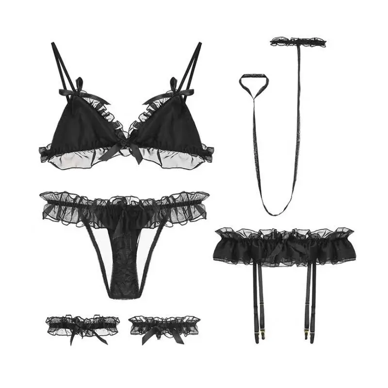 Set B Package includes: Bra + underwear + GARTER BELT + leg ring 2 + neck ring