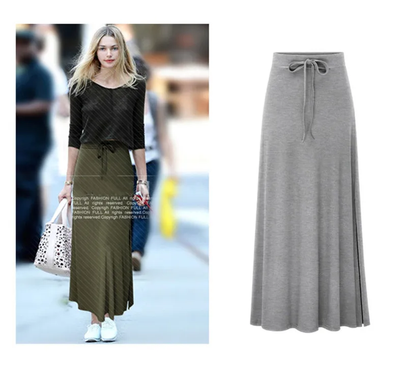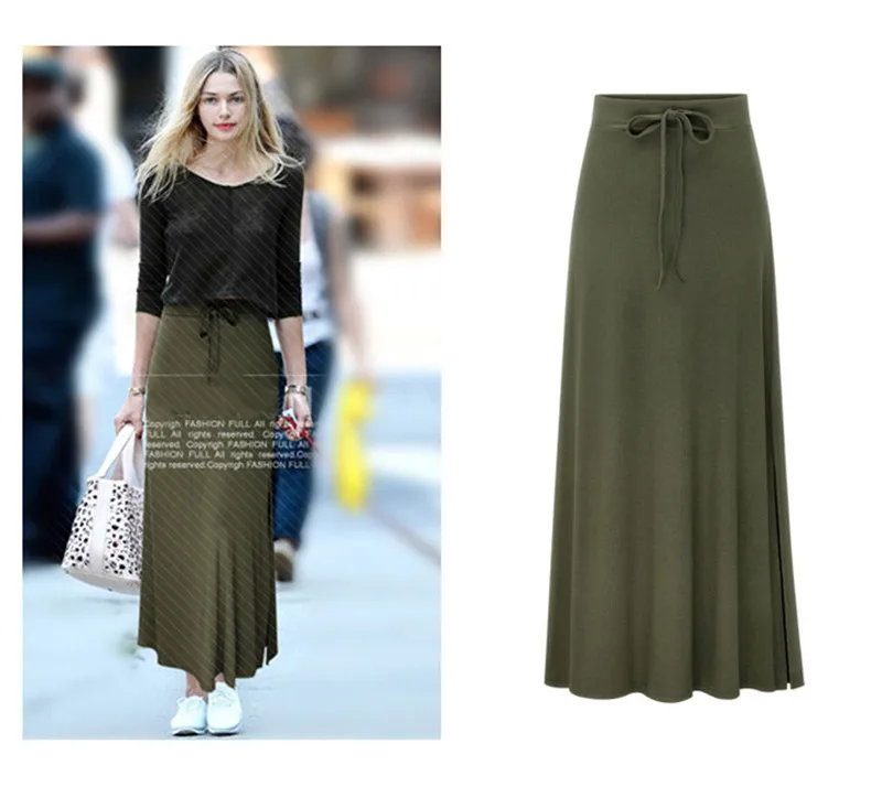 Long Skirt Black Winter 2020 Autumn Women Skirt Vintage High Waist A-Line Lace Up Maxi Skirt Solid Office Plus Size Jupe Femme