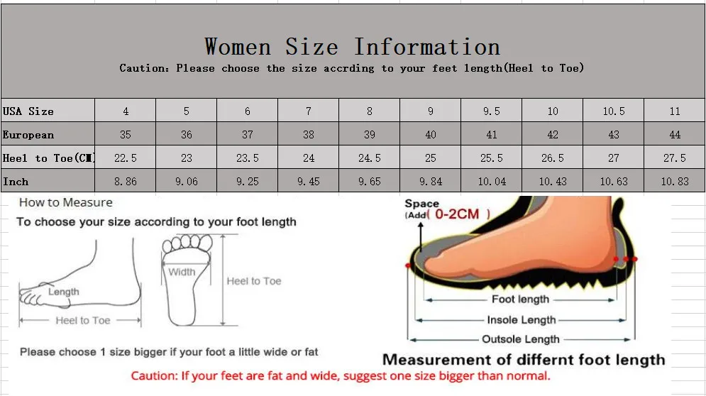 2. Please choose the size according to the length of the foot, (Do not choose the size according to the regular size of your country!!!)
