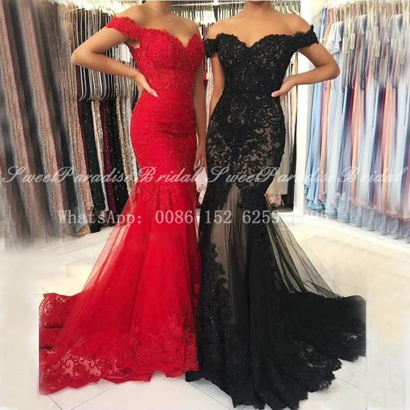 Luxury Beads Lace Bridesmaid Dresses With Appliques 2020 Mermaid Off Shoulder Women Long Sweep Train Prom Dress Wedding Party Vestidos Floor Length Custom Made Wholesale Price Customize Under 100 Corset Back