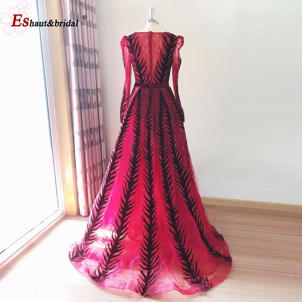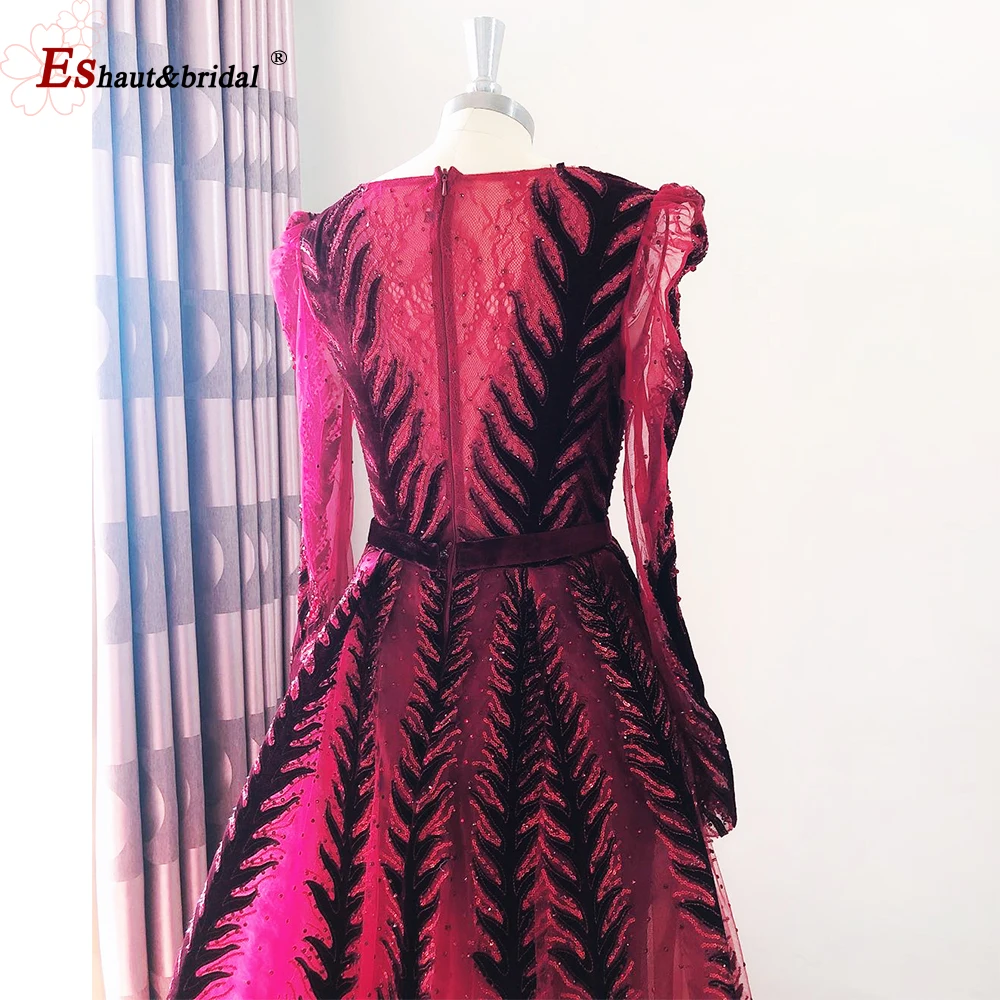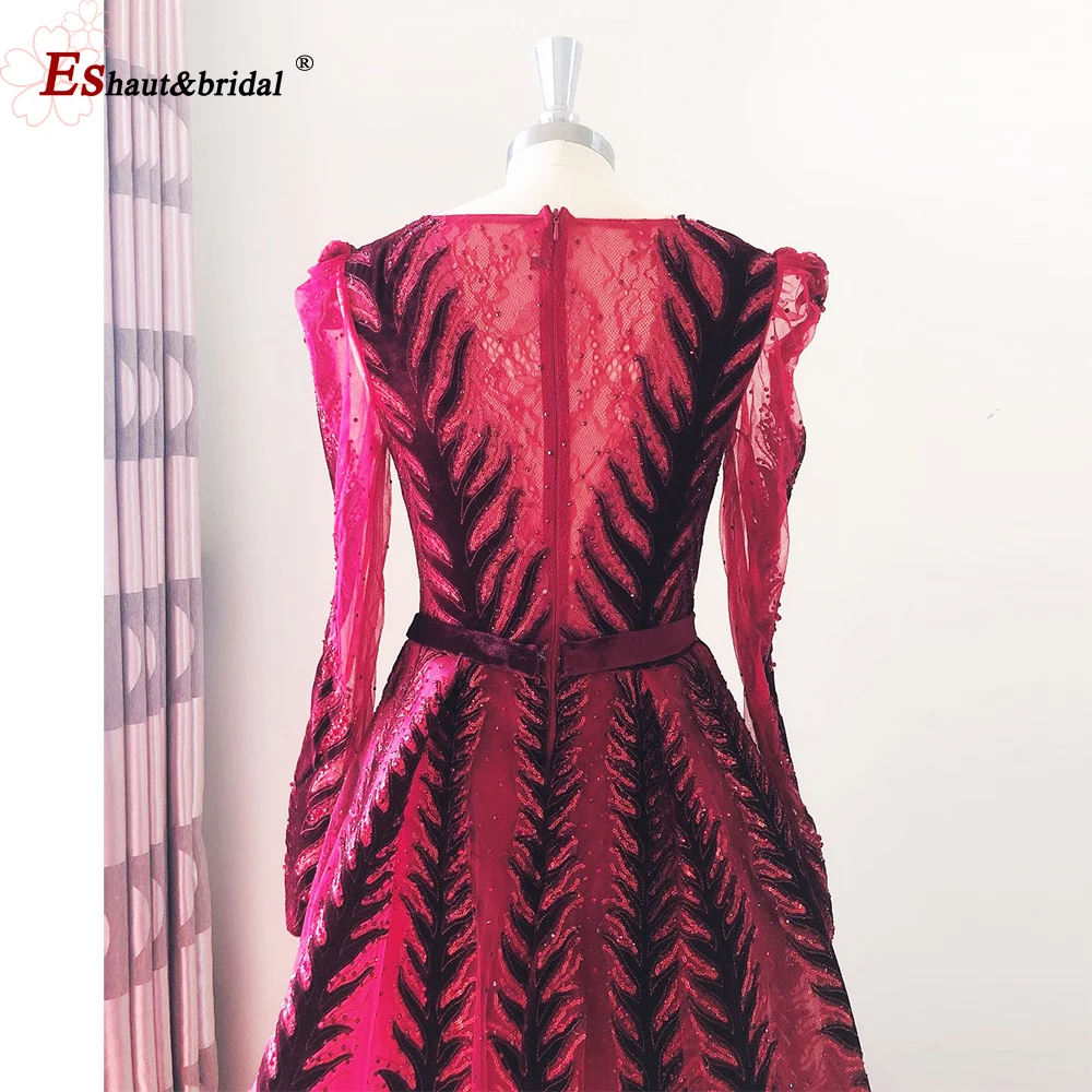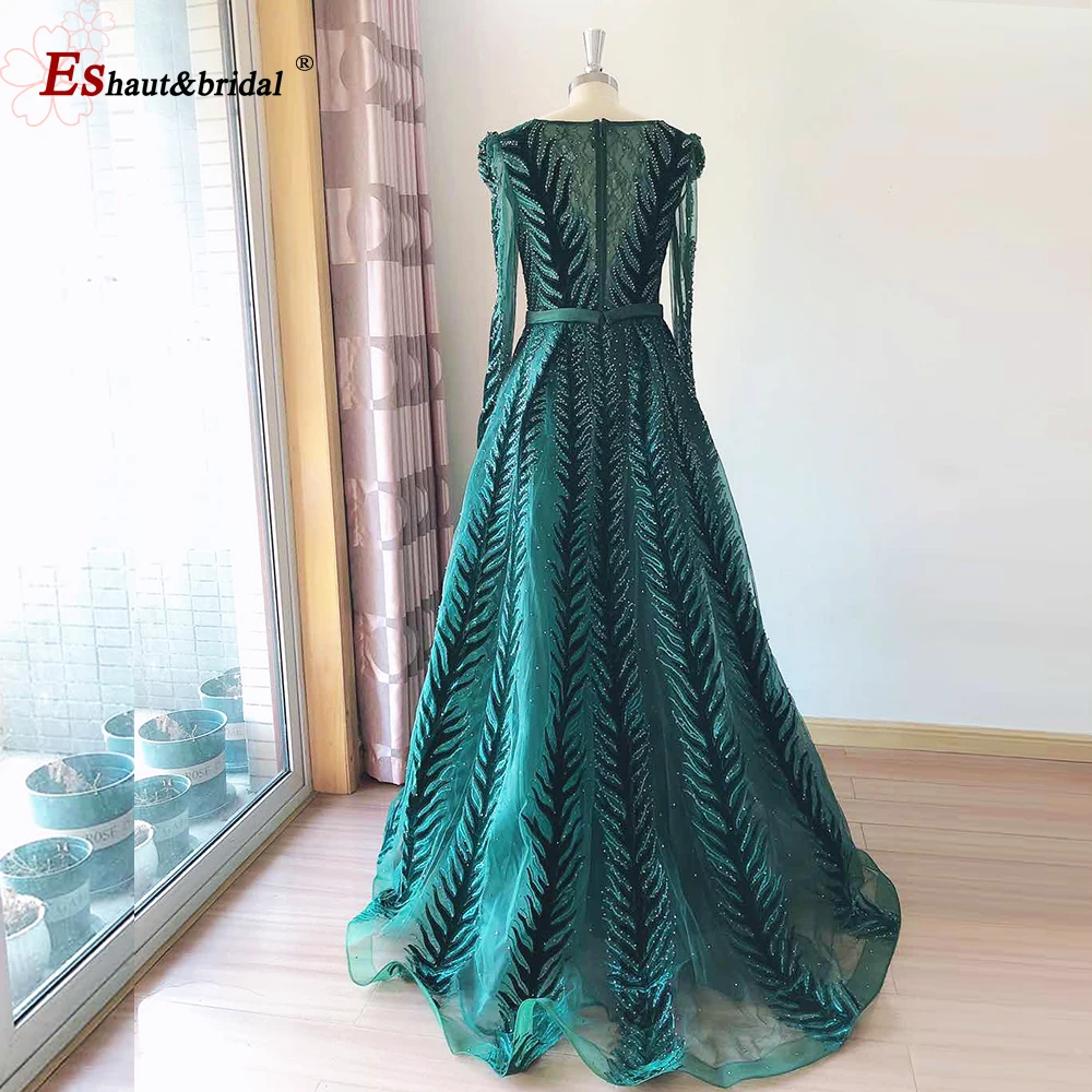 Luxury Dubai Evening Dress Mermaid 2020 V-Neck Long Sleeves Velvet Crystal Handmade Arabic Plus Size Formal Prom Party Gowns