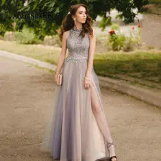 Luxury Gray Tulle Beading Homecoming Dress 2020 Short Prom Gown Illusion back Crystal Beaded Birthday Party Dress Custom Made