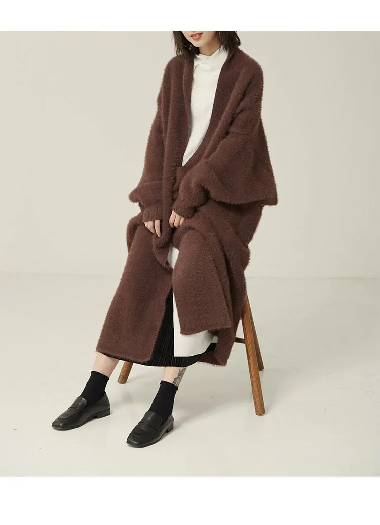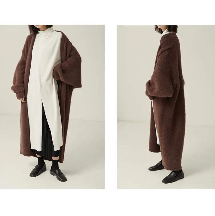 luxury long faux mink fur cardigans For Women New 2021 winter women”s Sweaters oversize female Pull