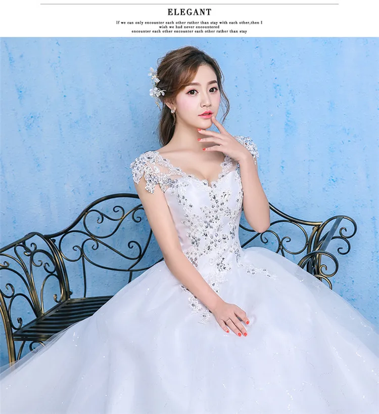 Luxury Plus Size Wedding Dress Elegant Lace Appliques V-neck Beading Wedding Gowns 2020 Crystal Lace Up White Vestido De Noiva