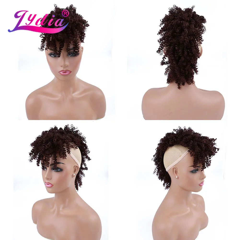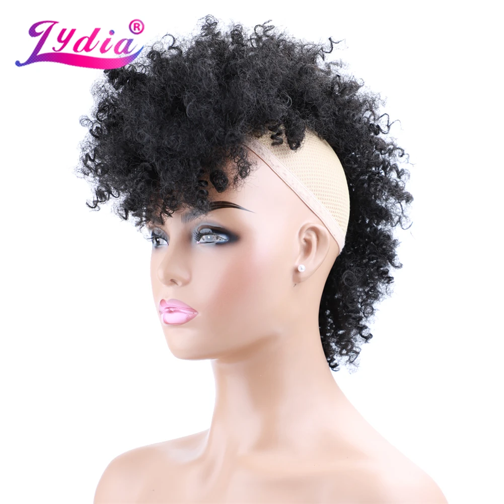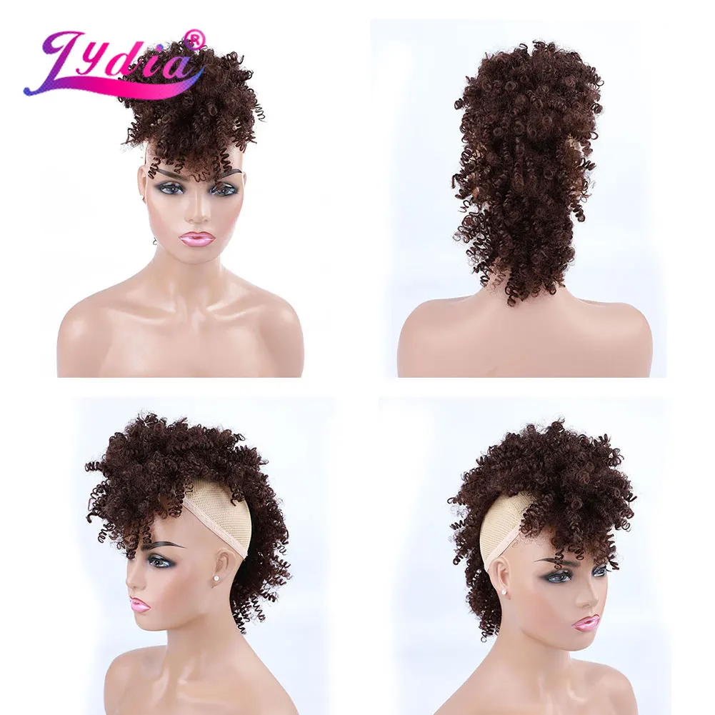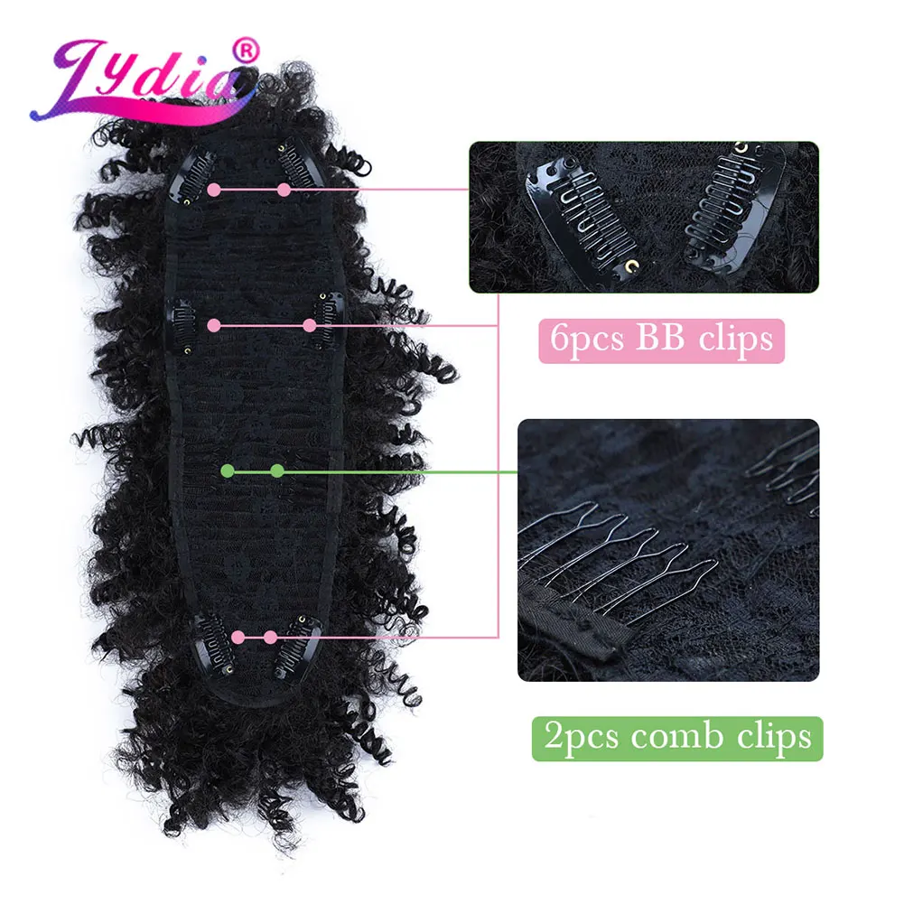 Lydia Synthetic High Puff Afro Short Kinky Curly Middle-Part Wig Clips in Hair Extension African American 90g/PCS Hairpiece