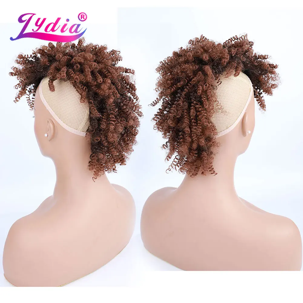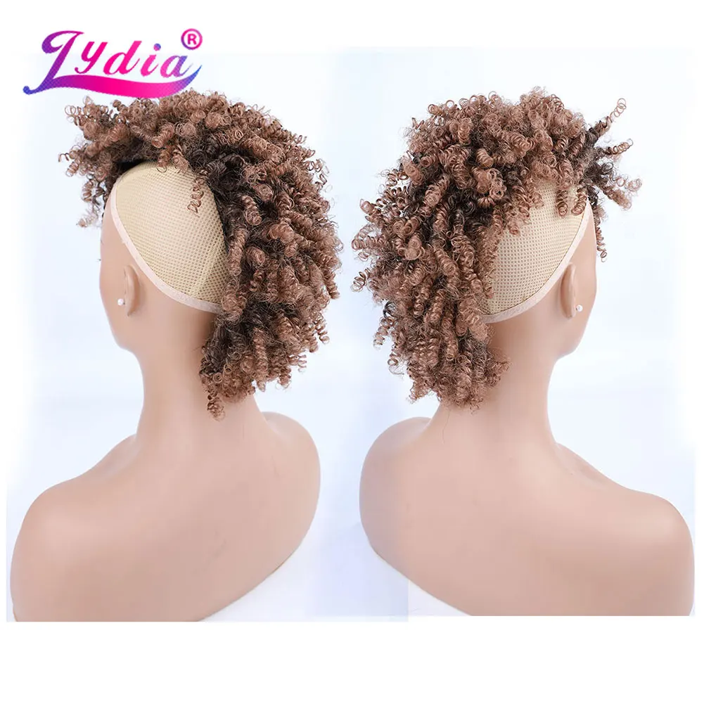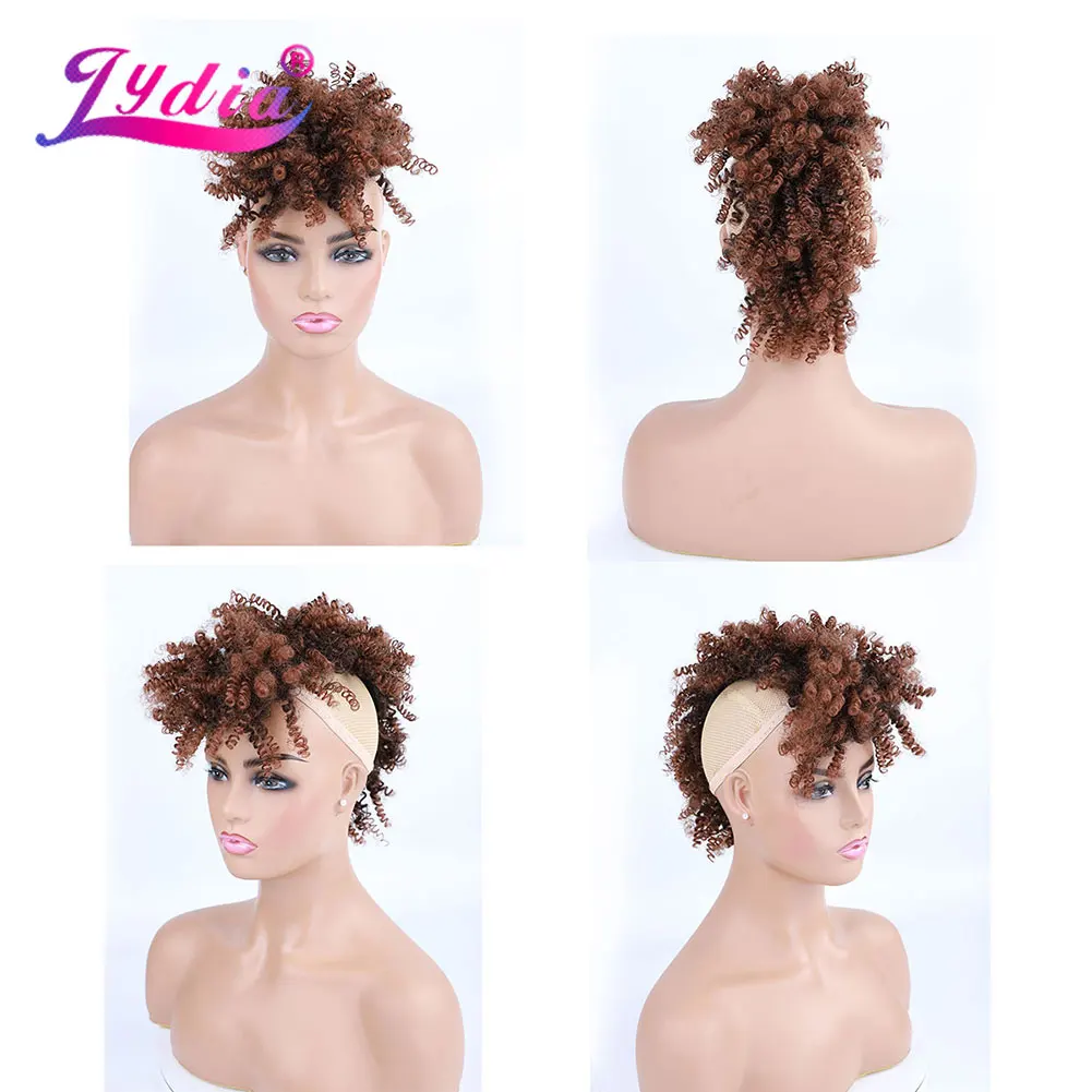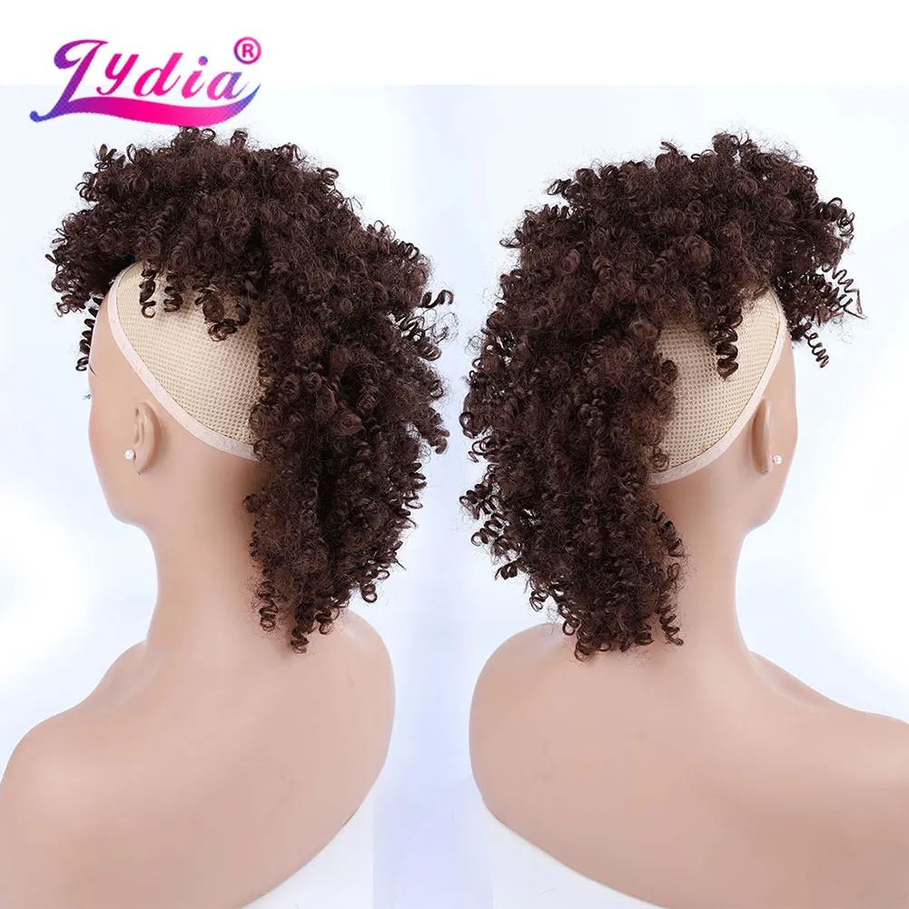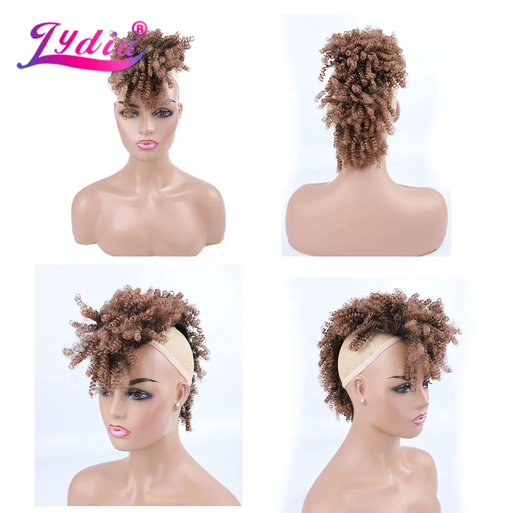 Lydia Synthetic High Puff Afro Short Kinky Curly Middle-Part Wig Clips in Hair Extension African American 90g/PCS Hairpiece