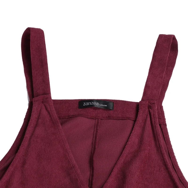 M 5XL ZANZEA Sleeveless Corduroy Sundress Summer Fashion Solid Overalls Dress Women Casual Suspender Vestidos Female Sarafans