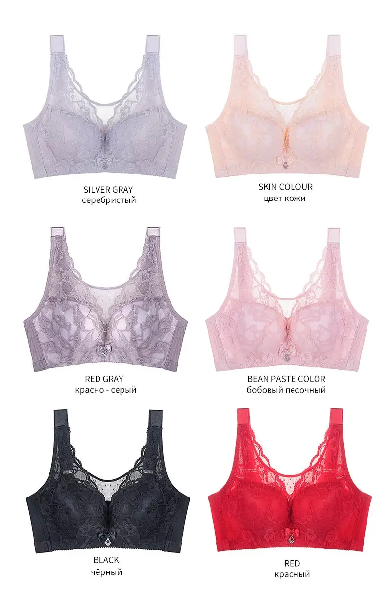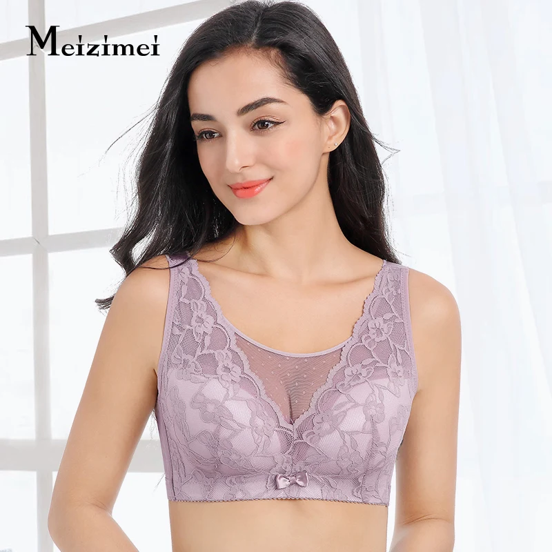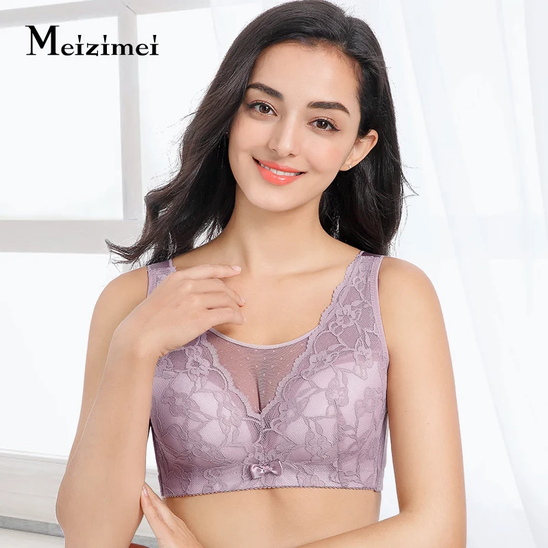 Meizimei Sexy Women Lace Bra Gather Back Closure Wire Free Brassiere Bralette Female Large Cup big size bh push up Bra Underwear