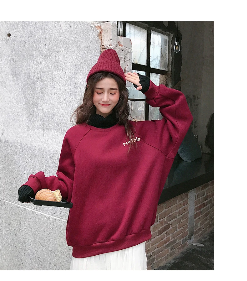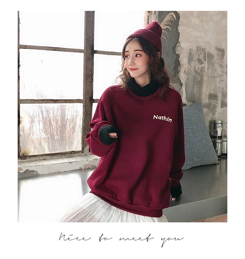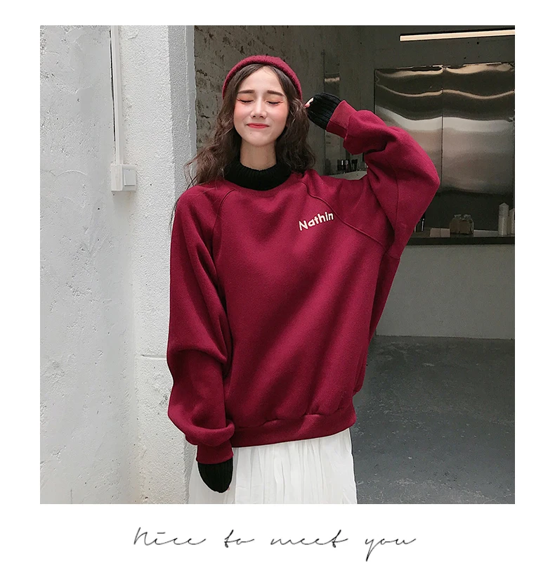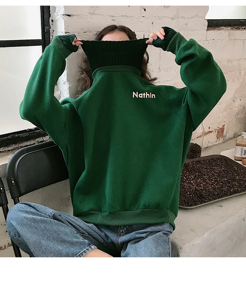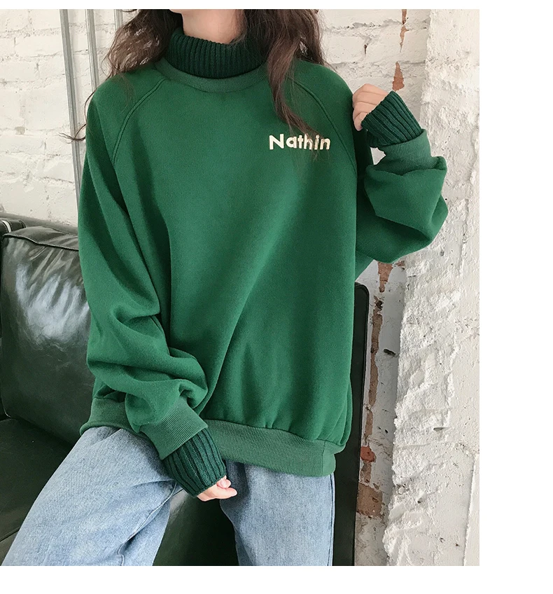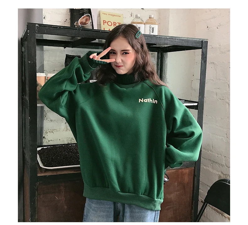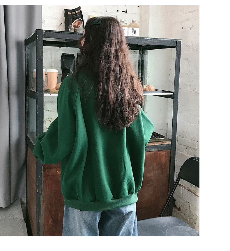 MELIFLE Winter Warm Green Silk Sweatshirt for Women Long Sleeve Pure Soft Hoodies Fashion Korean Loose Velvet Thick Tops Clothes​