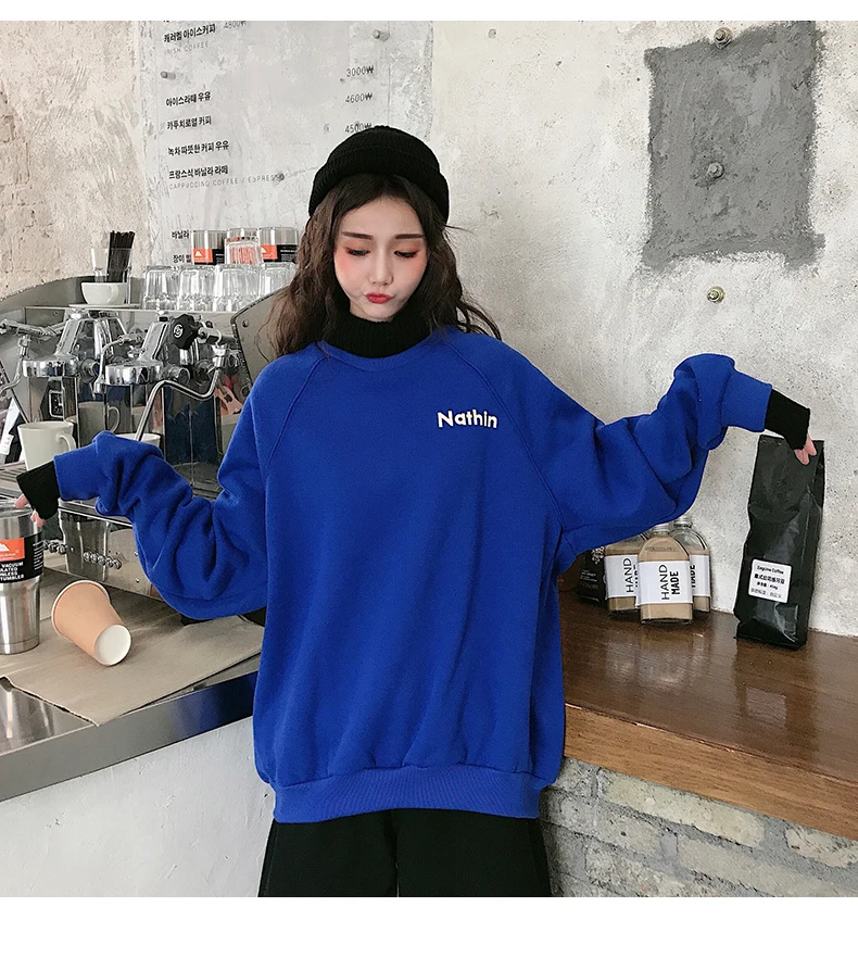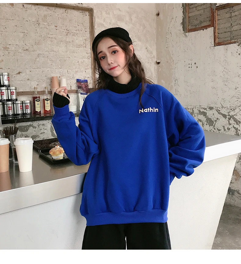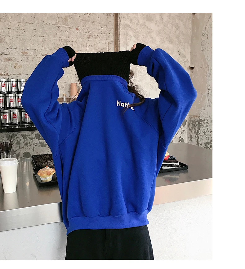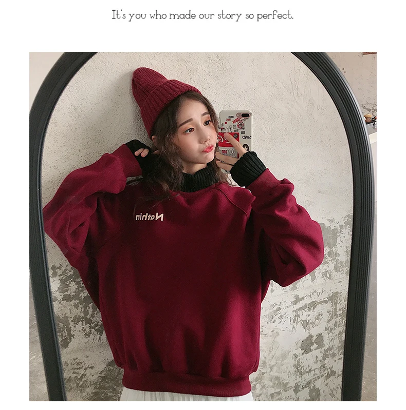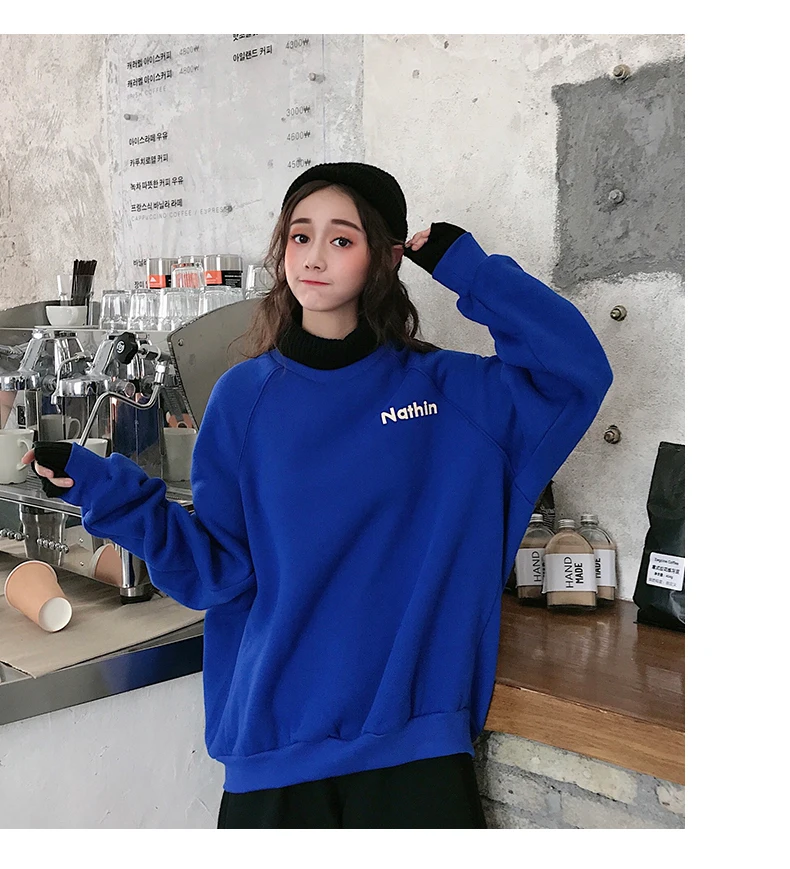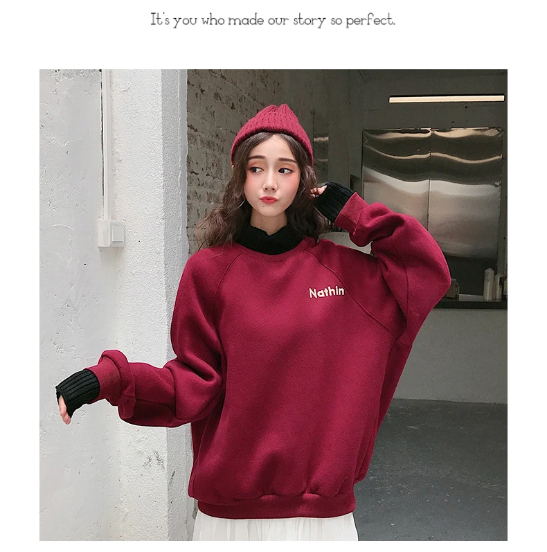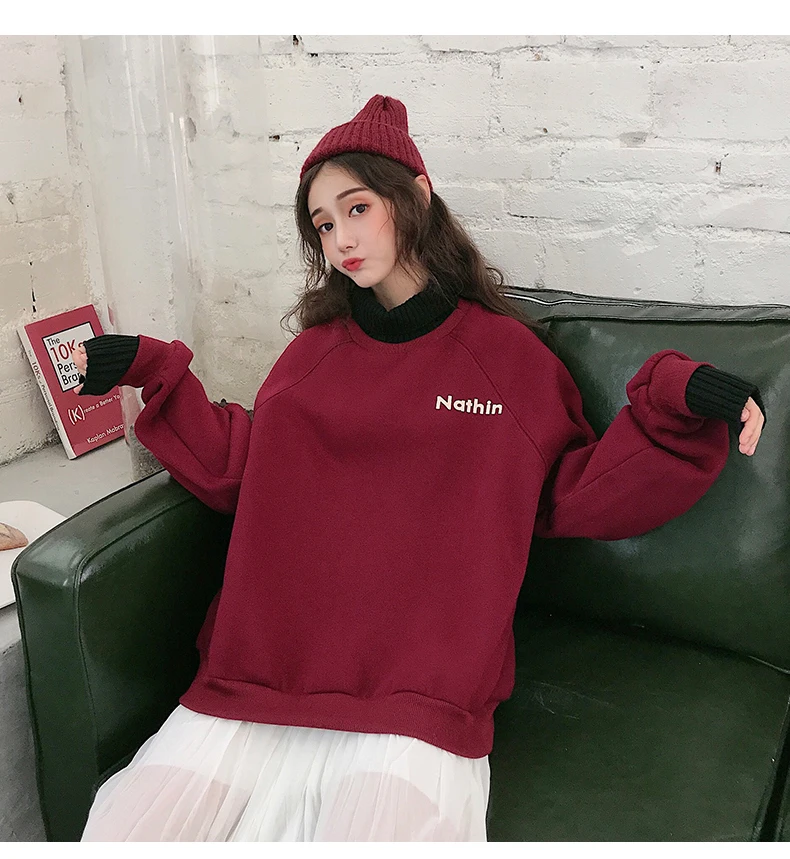 MELIFLE Winter Warm Green Silk Sweatshirt for Women Long Sleeve Pure Soft Hoodies Fashion Korean Loose Velvet Thick Tops Clothes​
