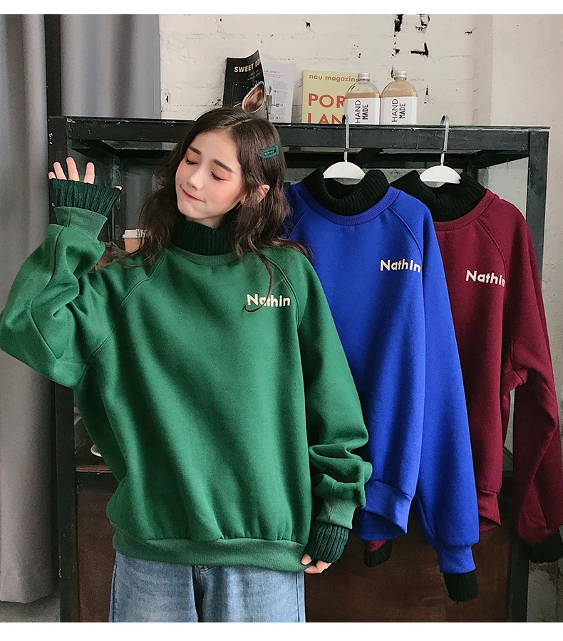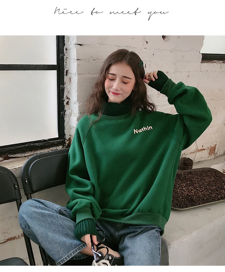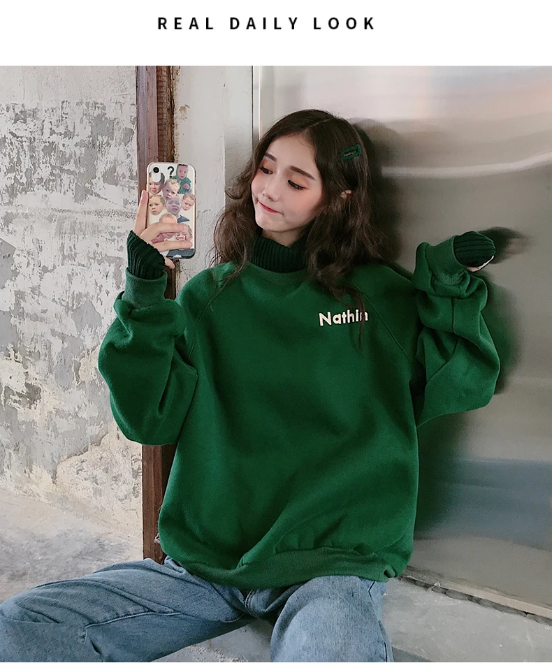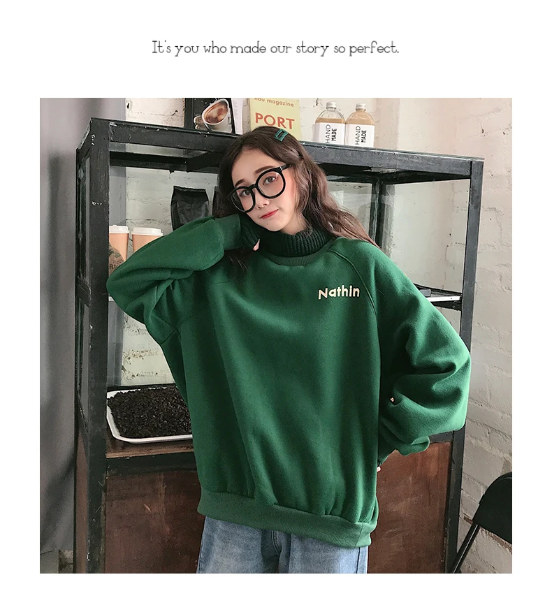 MELIFLE Winter Warm Green Silk Sweatshirt for Women Long Sleeve Pure Soft Hoodies Fashion Korean Loose Velvet Thick Tops Clothes​ Item: Hoodies&Sweatshirts Size: M L XL XXL Fabric: Polyester Spandex Collar: Hooded sweatshirt Sleeve: Long Sleeve Hoodies Sweatshirts Pattern: Love heart, letters hoodies Support: Wholesale & Dropshipping M: Weight 40-50KG…