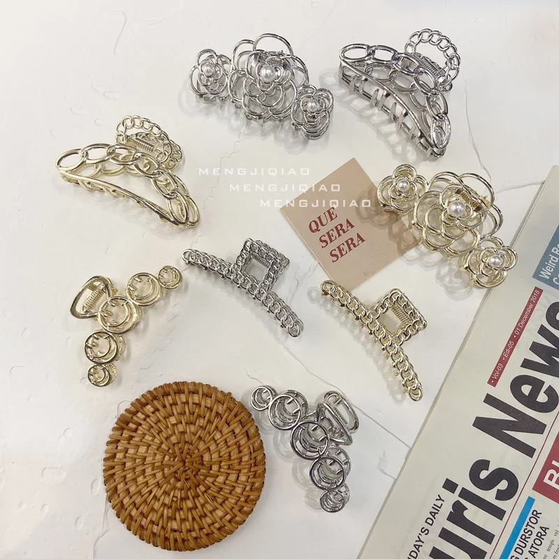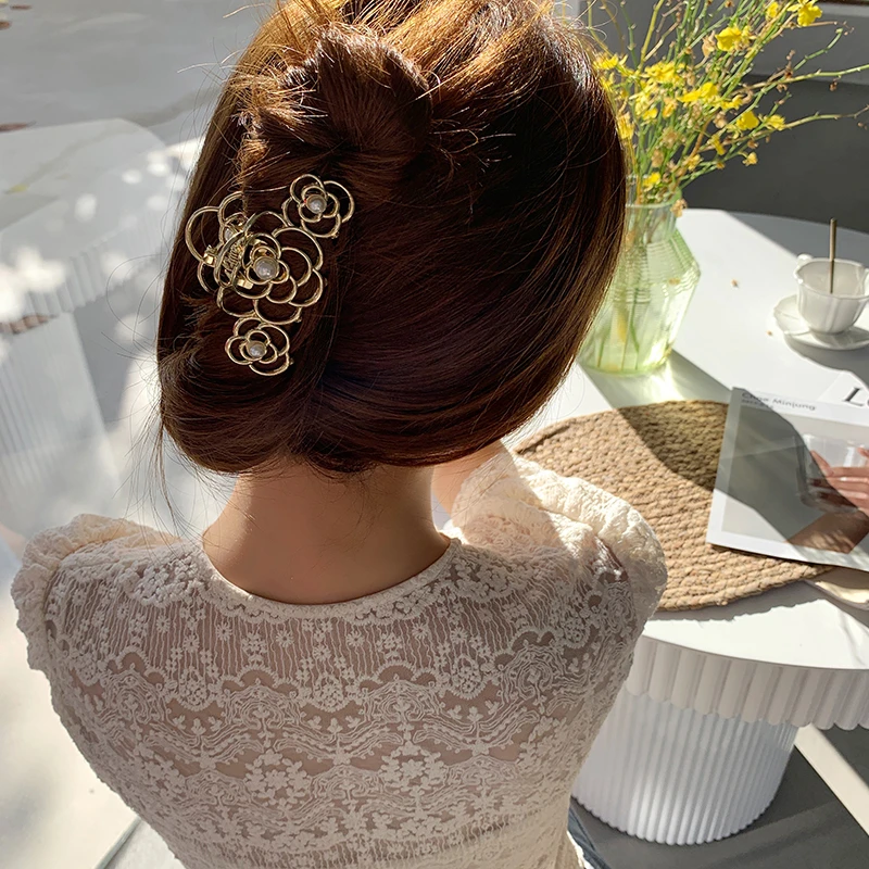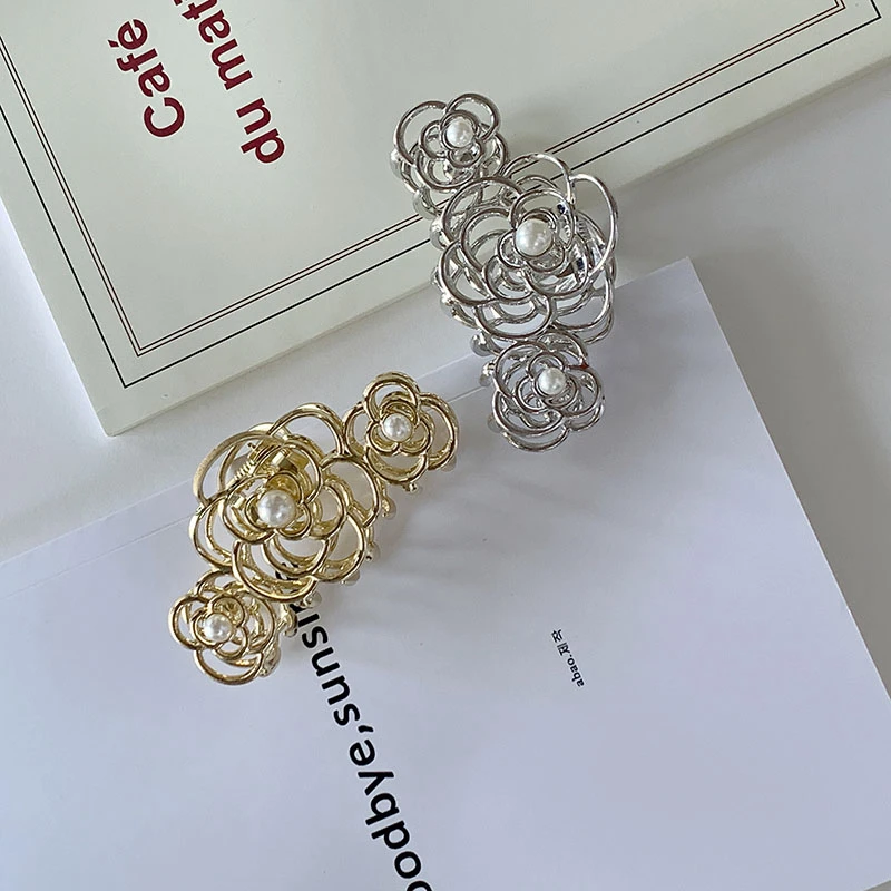 MENGJIQIAO Wholesale Korean Metal Hair Clips Pearl Flower Hair Claws For Women Fashion Bridal Wedding Hair Accessories Jewelry