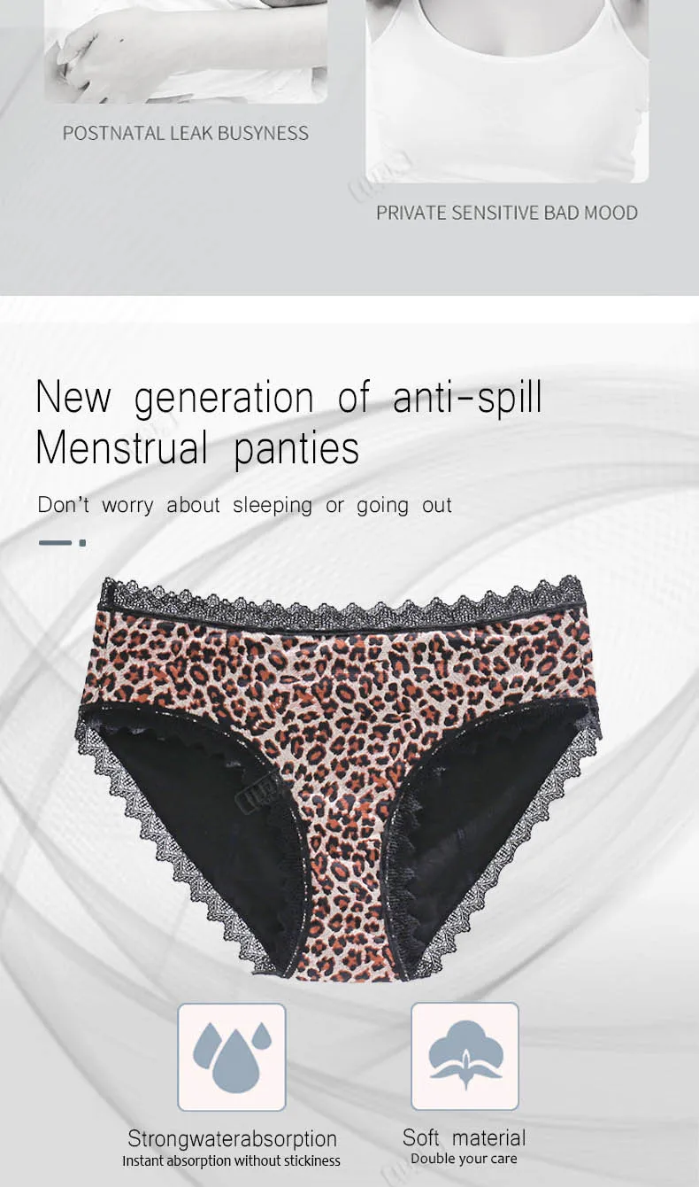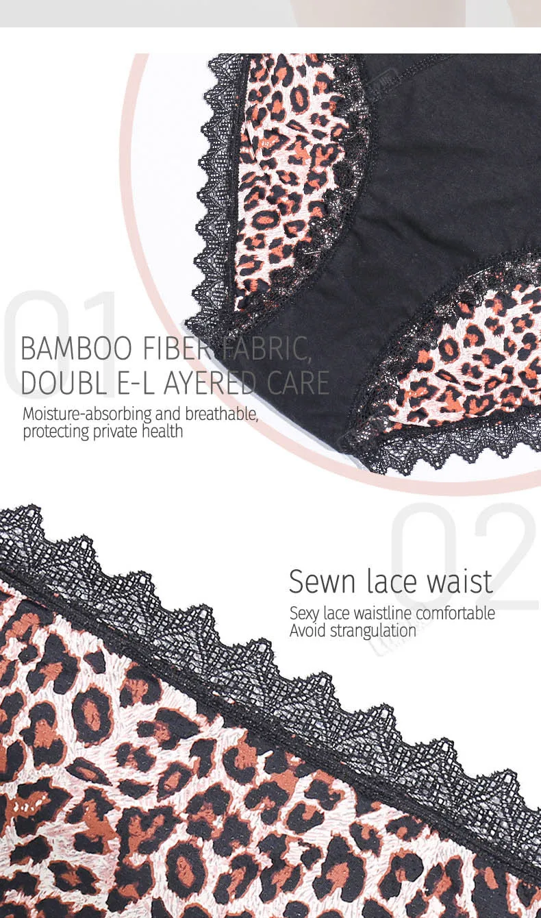Menstrual Panties Leopard Print Women’s Underwear Four Layers Leakproof Pants Bamboo Fiber Period Briefs Hot Sexy Lingerie New