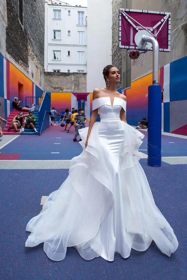 Mermaid Wedding Dresses With Detachable Skirt Off The Shoulder Satin Bridal Gowns White Wedding Dress vestido de noiva